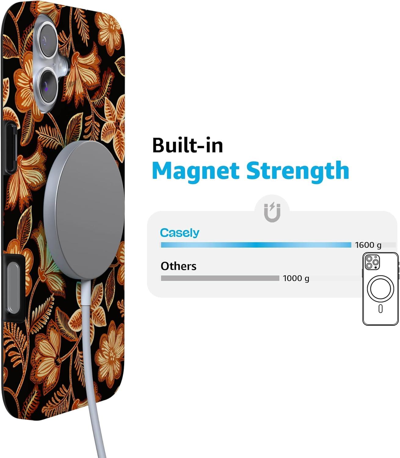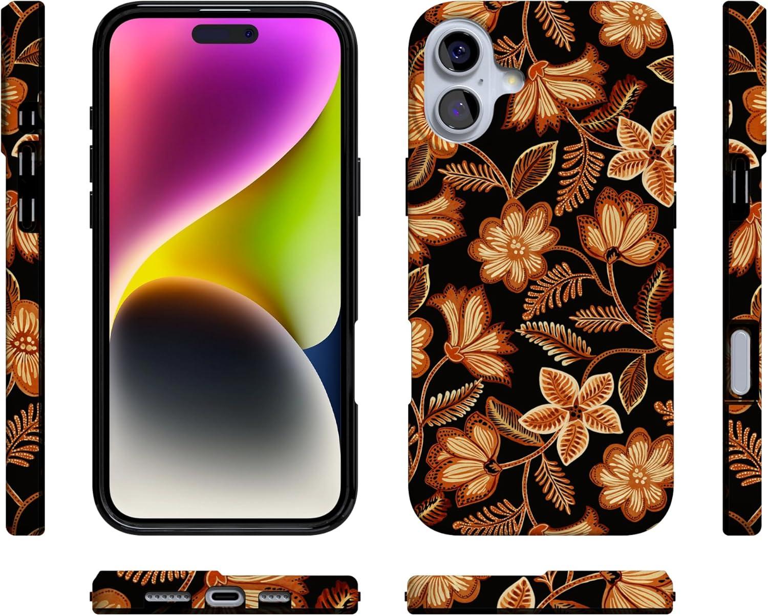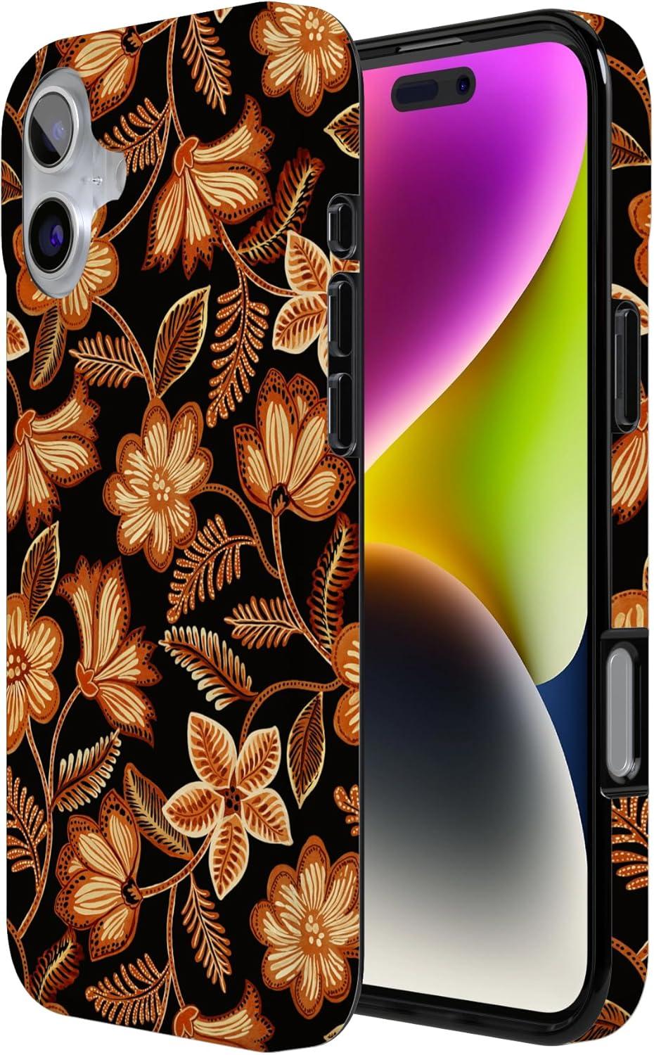 Casely iPhone 16 Case | Van Gogh | Head of a Skeleton with a Burning Cigarette Phone | Classic Ultra-Slim Design | Compatible with MagSafe(Maple Flowers | Floral Foliage)