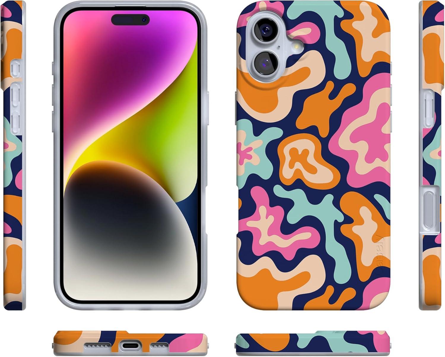 Casely iPhone 16 Case | Van Gogh | Head of a Skeleton with a Burning Cigarette Phone | Classic Ultra-Slim Design | Compatible with MagSafe(Midnight Color Splash | Abstract Retro)