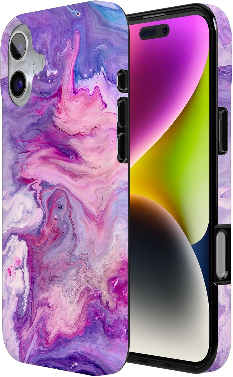 Casely iPhone 16 Case | Van Gogh | Head of a Skeleton with a Burning Cigarette Phone | Classic Ultra-Slim Design | Compatible with MagSafe(Tie Dying Over You | Purple Marble)