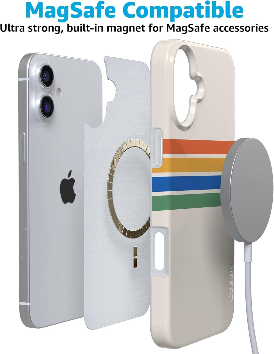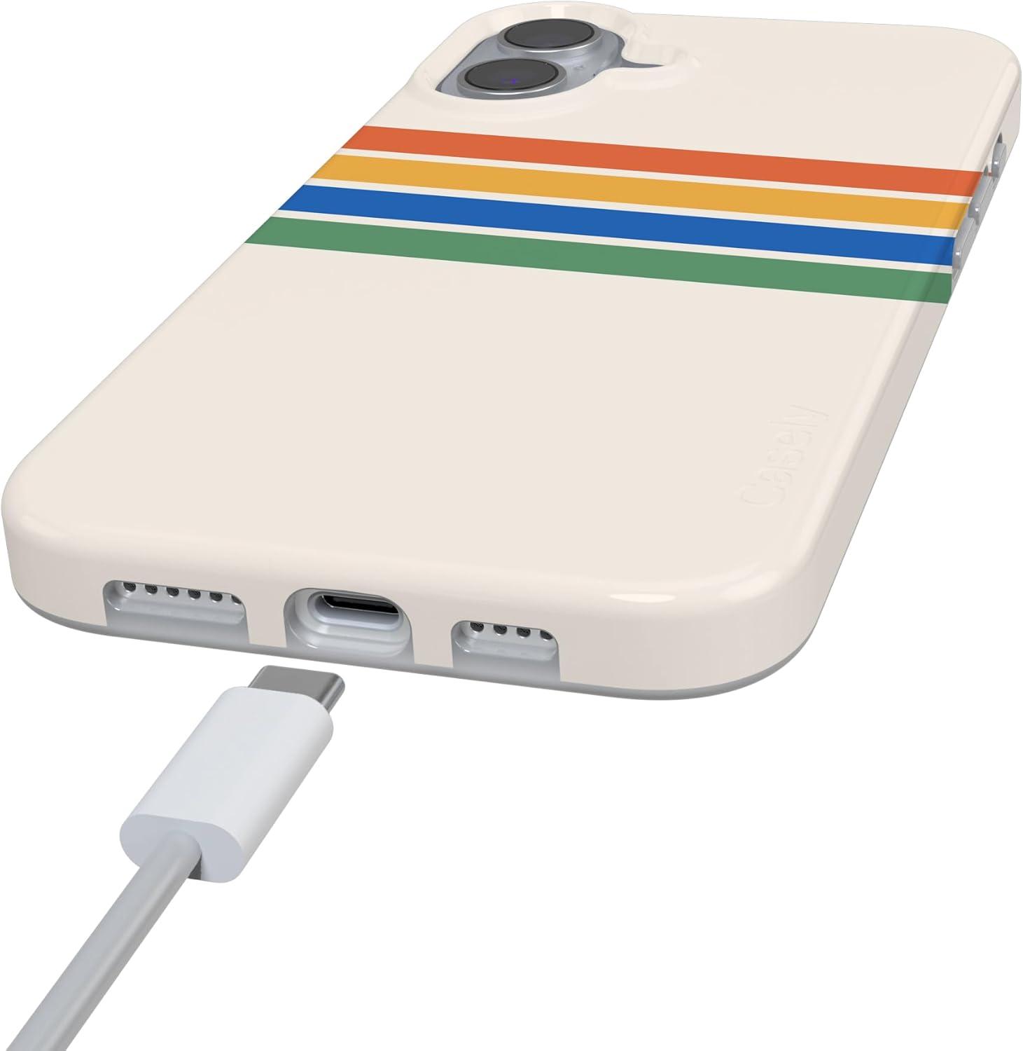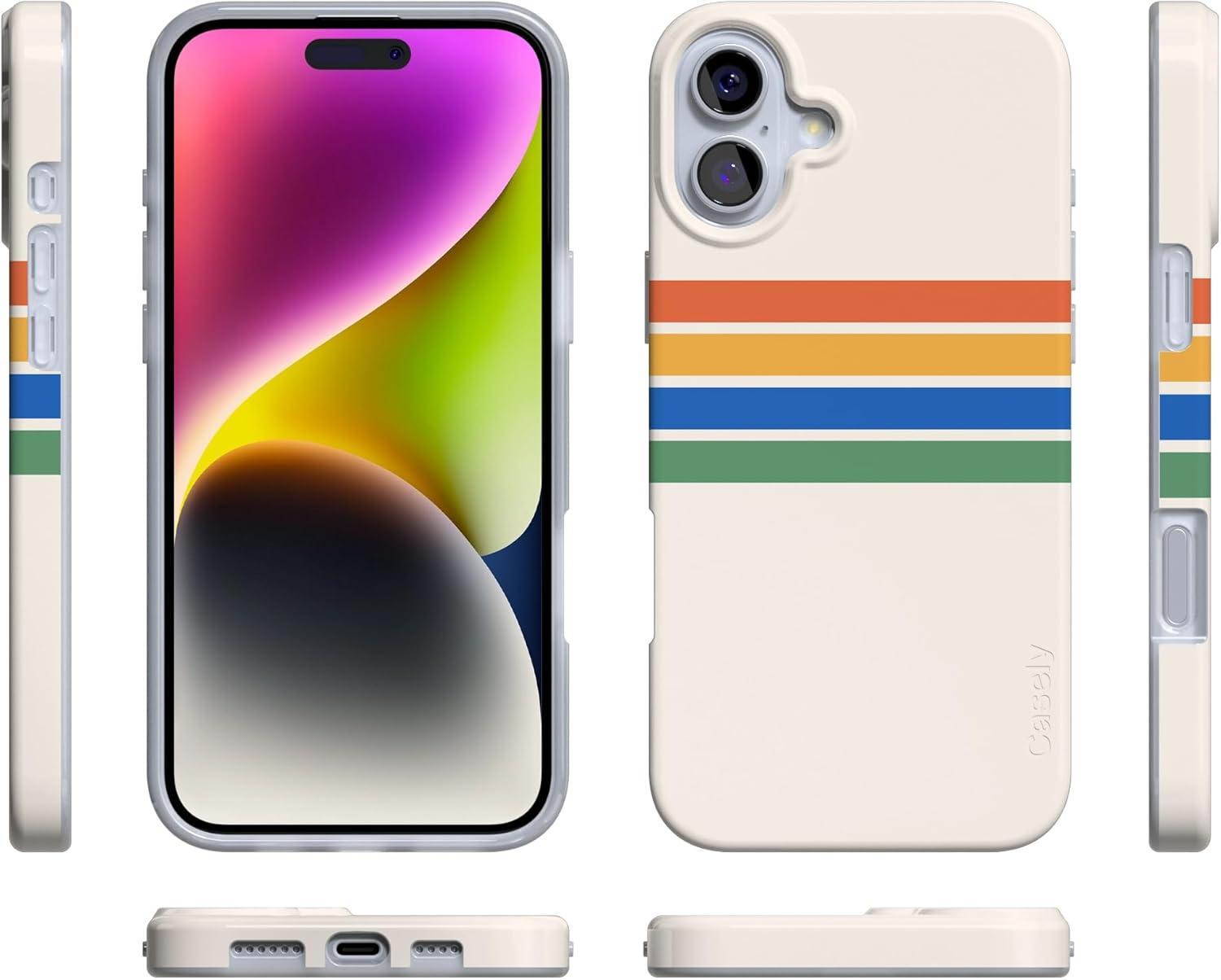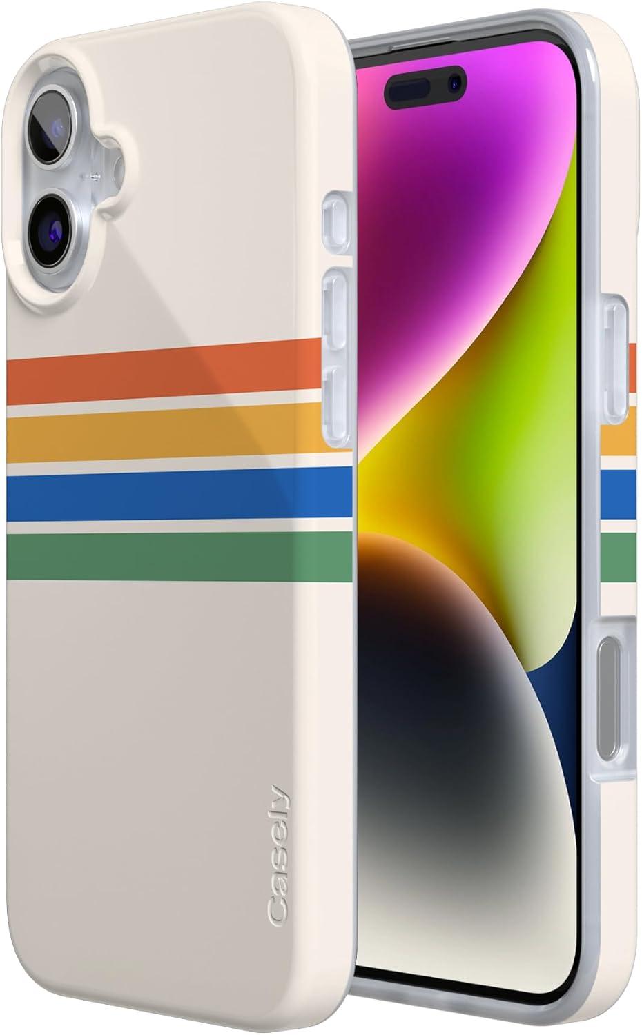 Casely iPhone 16 Case | Van Gogh | Head of a Skeleton with a Burning Cigarette Phone | Classic Ultra-Slim Design | Compatible with MagSafe(Totally Groovy | Rainbow Stripes Color Block)