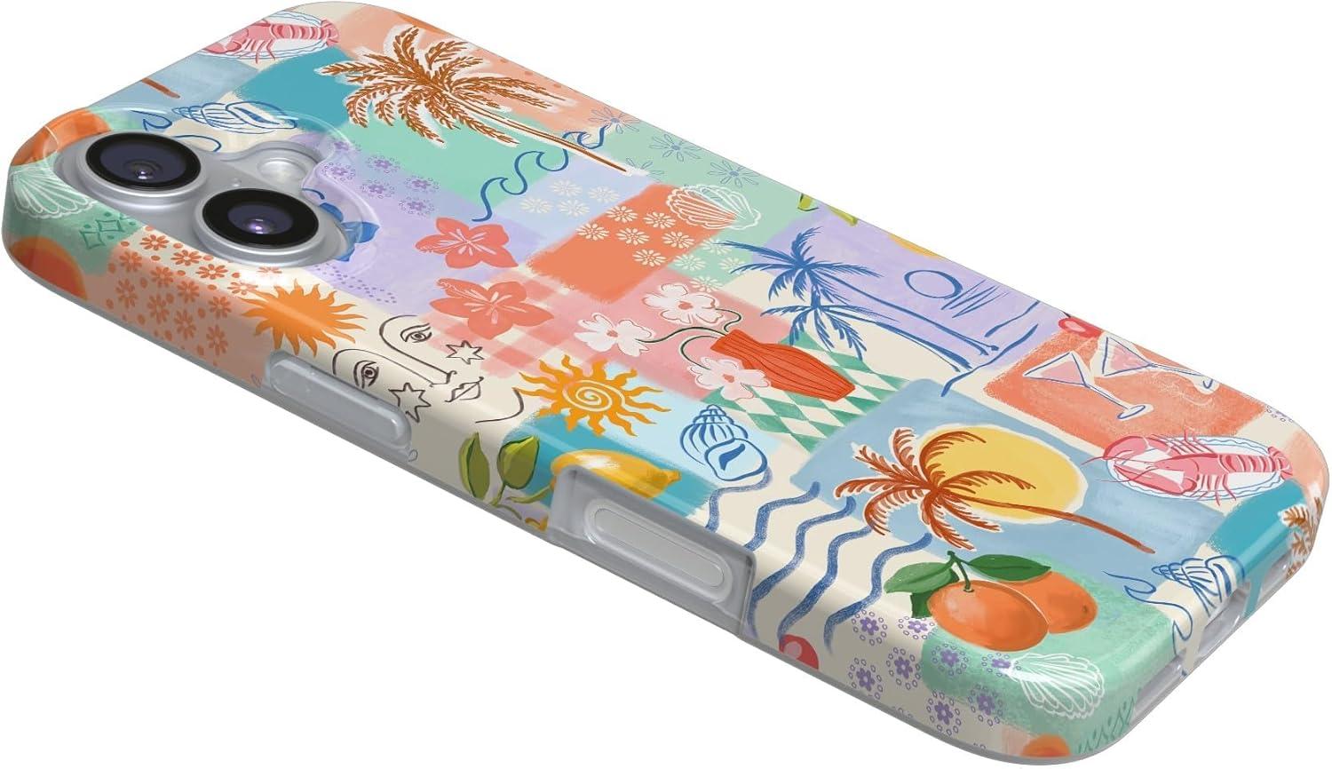 Casely iPhone 16 Case | Van Gogh | Head of a Skeleton with a Burning Cigarette Phone | Classic Ultra-Slim Design | Compatible with MagSafe(Tropical Heat | Beachy Collage)