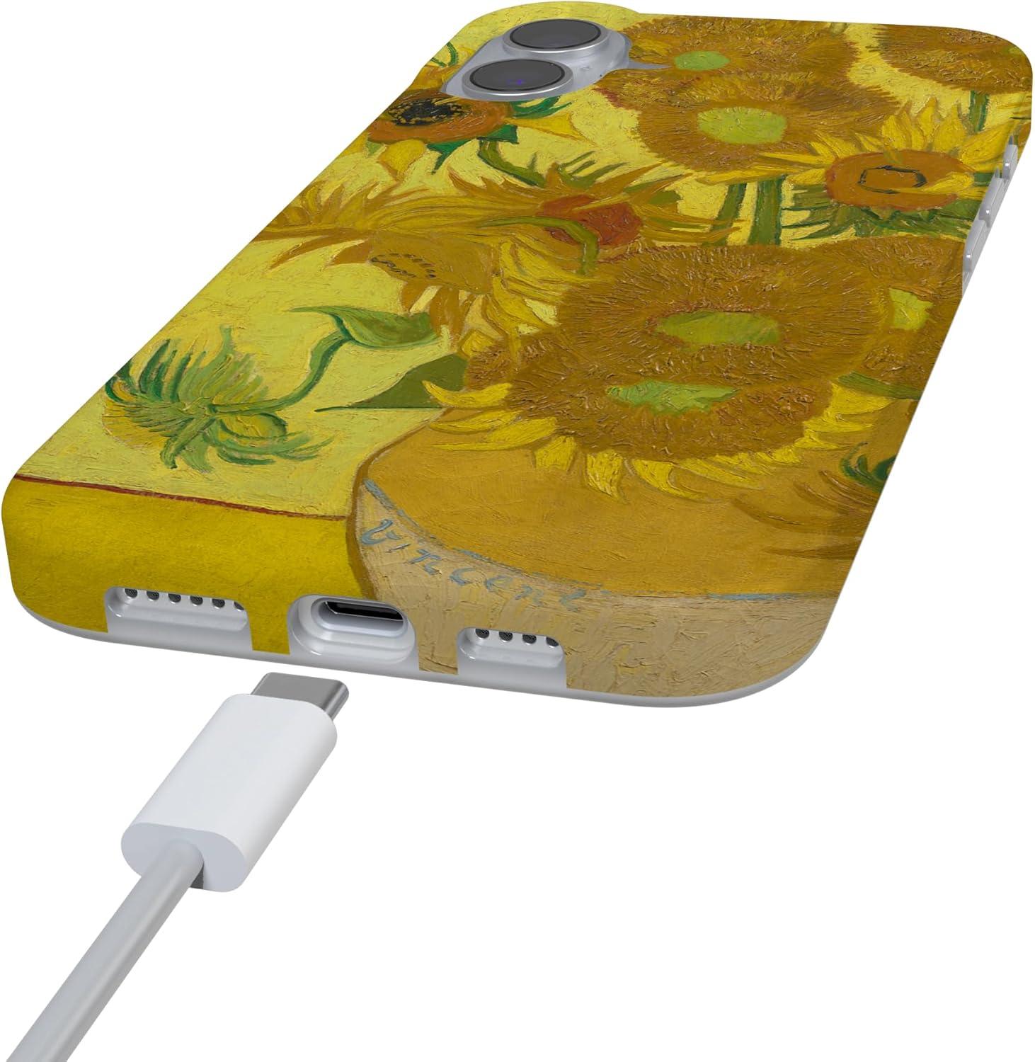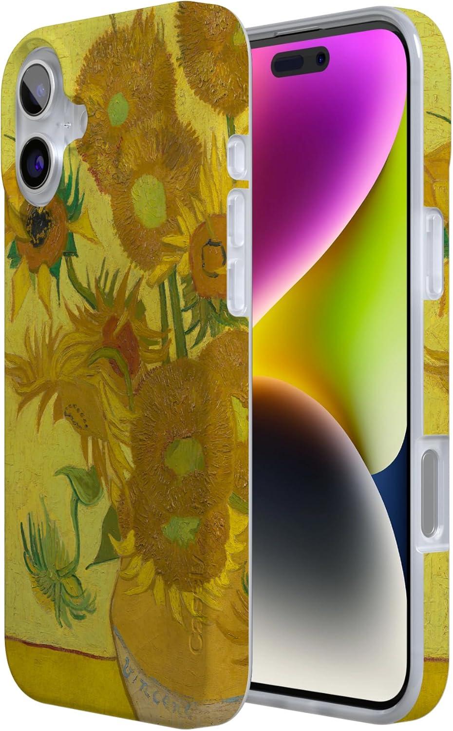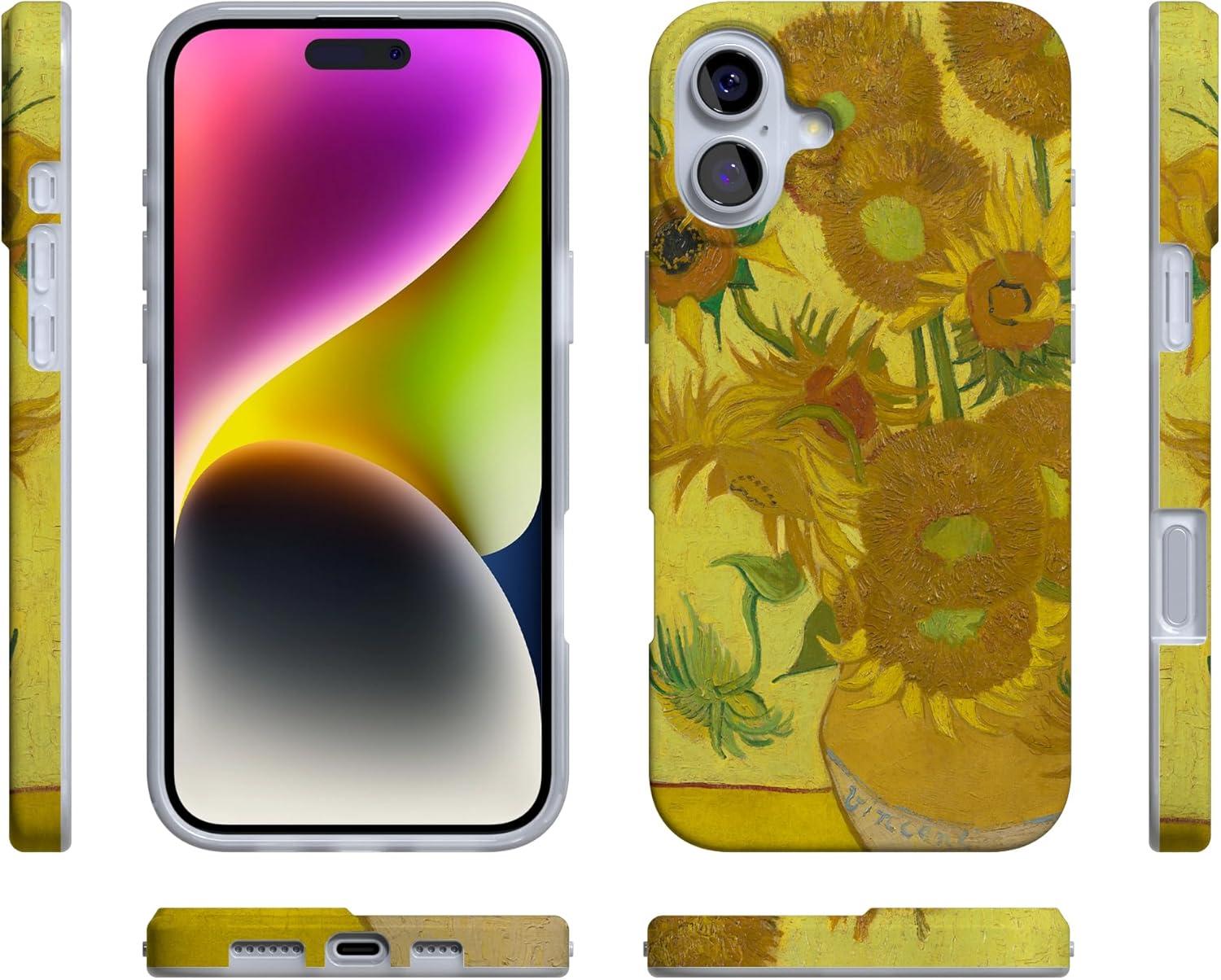Casely iPhone 16 Case | Van Gogh | Head of a Skeleton with a Burning Cigarette Phone | Classic Ultra-Slim Design | Compatible with MagSafe(Van Gogh | Sunflowers Floral)