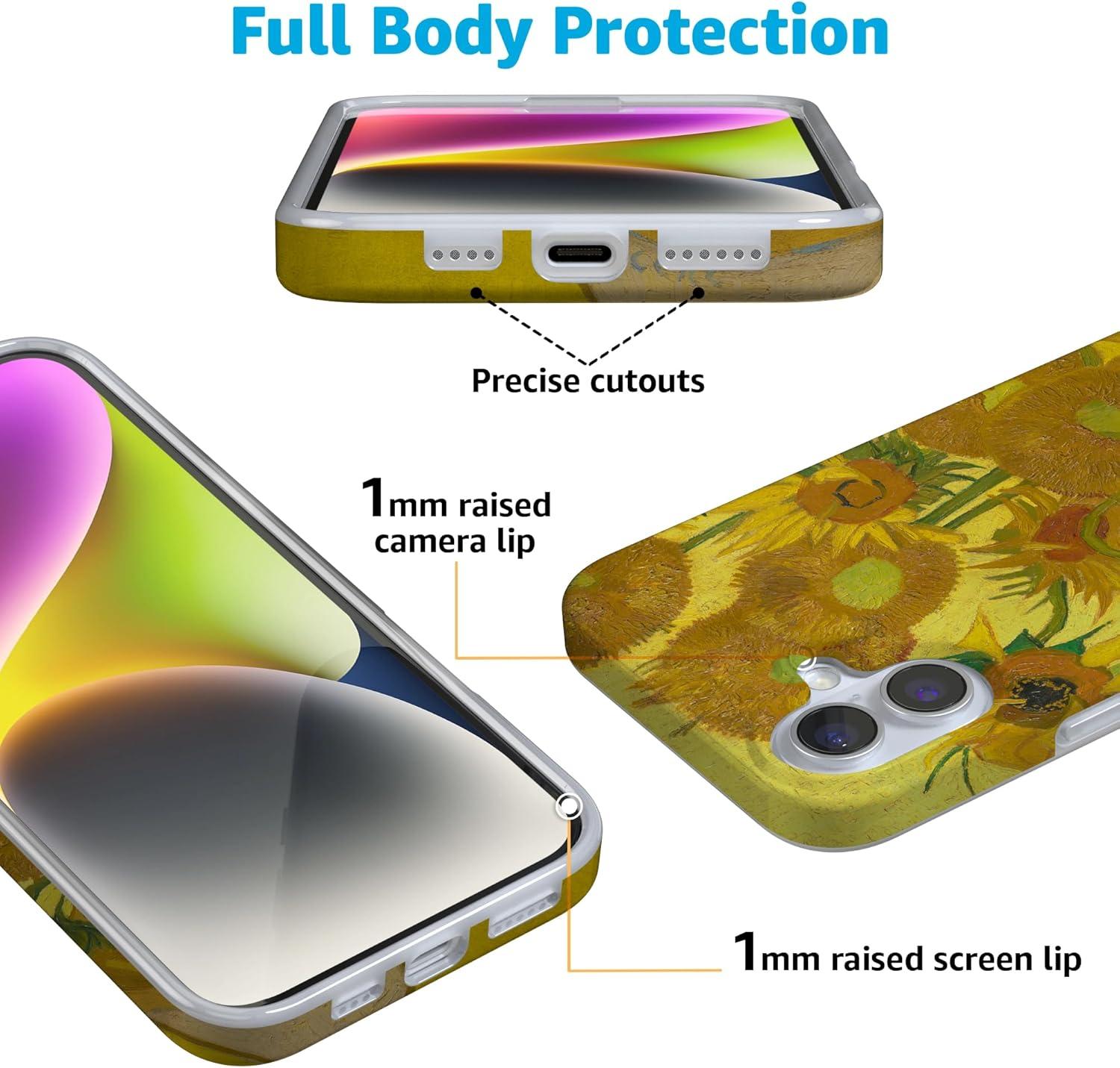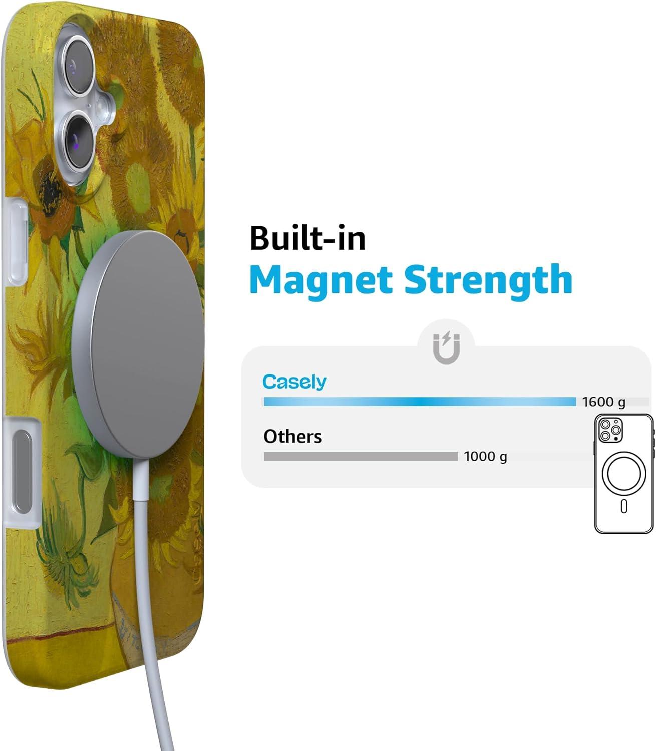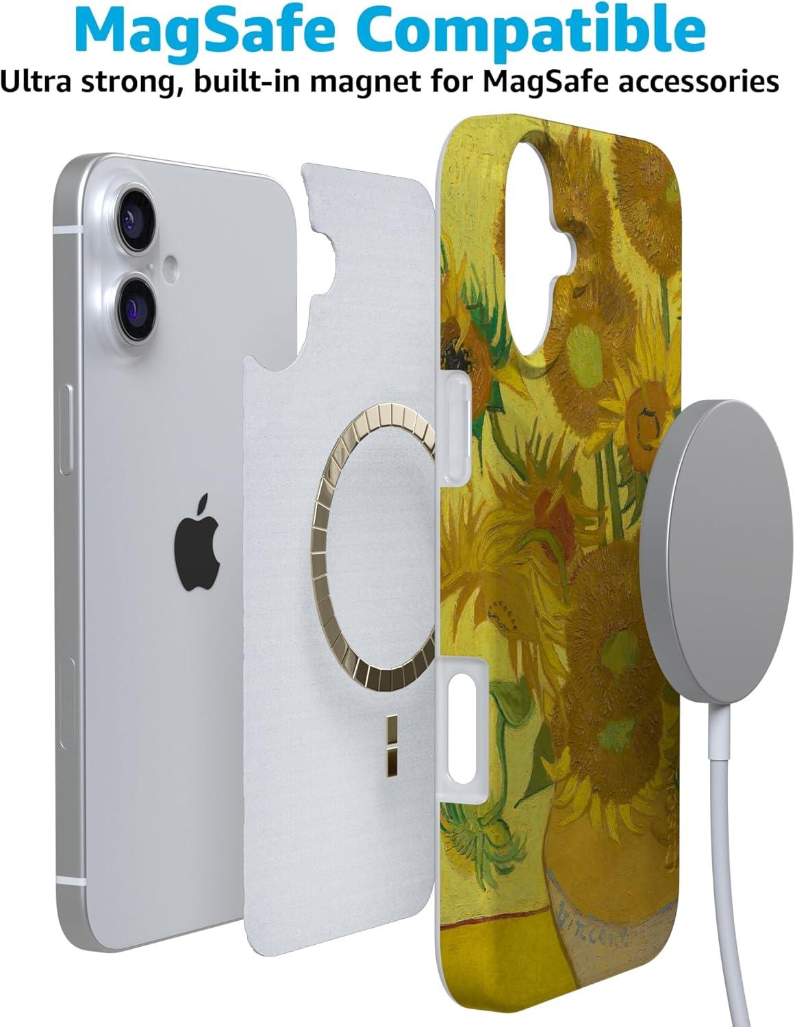 Casely iPhone 16 Case | Van Gogh | Head of a Skeleton with a Burning Cigarette Phone | Classic Ultra-Slim Design | Compatible with MagSafe(Van Gogh | Sunflowers Floral)