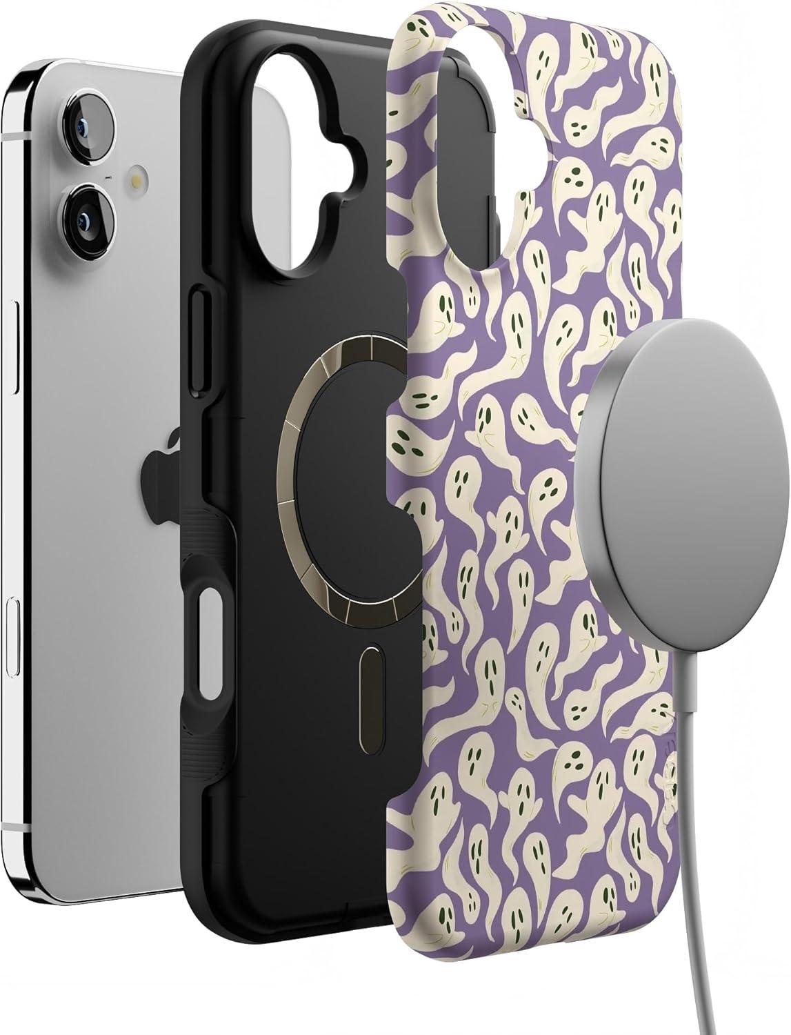 Casely iPhone 16 Plus Case | All Boo’d Up | Purple Ghost | Bold Protective Design | MagSafe Compatible Design