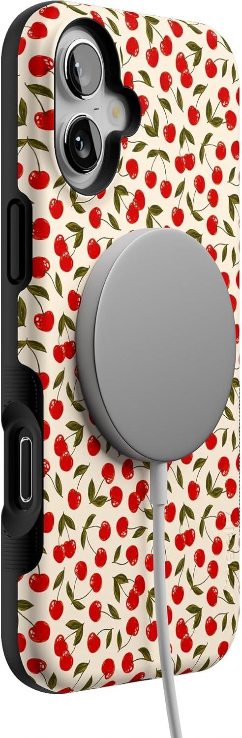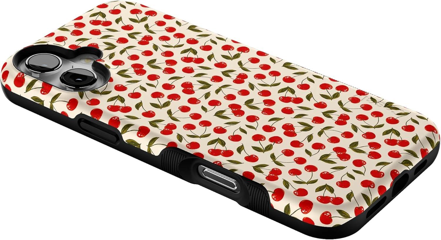 Casely iPhone 16 Plus Case | Bordeaux Rose | Moody Monochrome | Bold Protective Design | Compatible with MagSafe(Cherry on Top | Red Cherries)