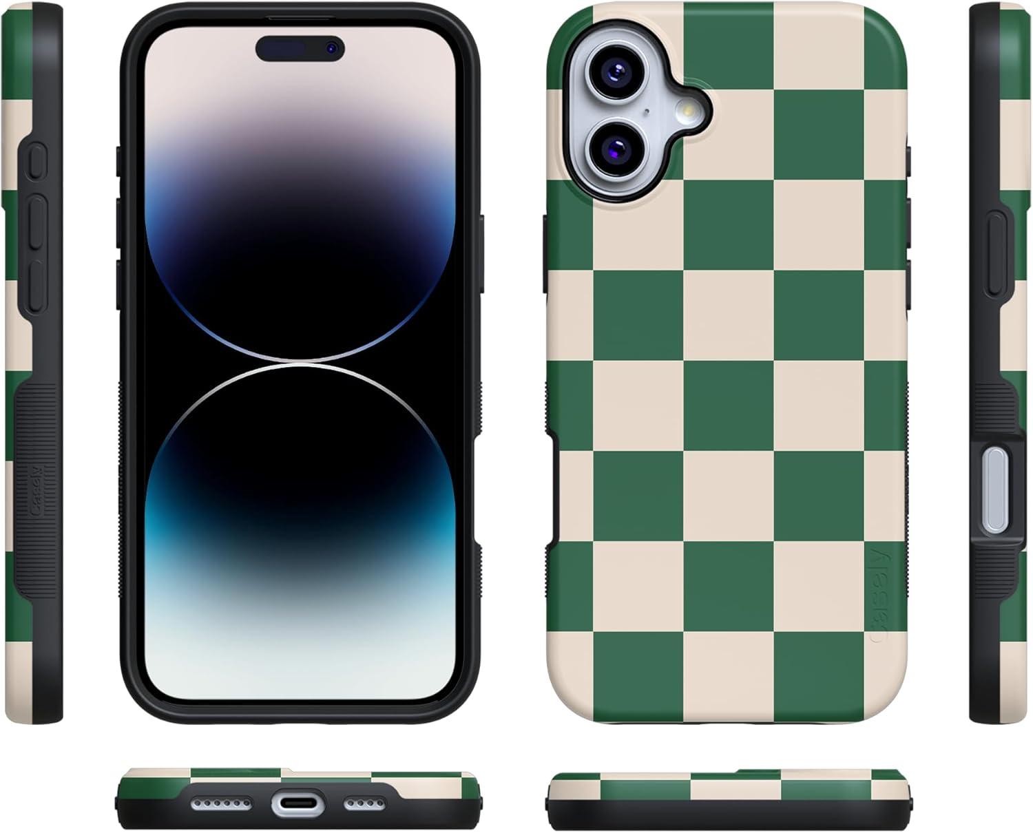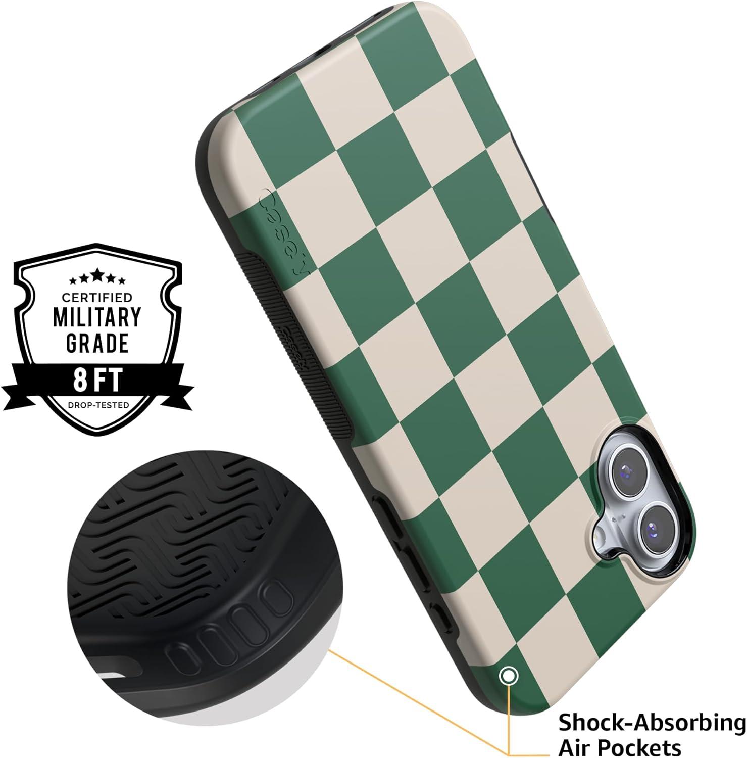 Casely iPhone 16 Plus Case | Bordeaux Rose | Moody Monochrome | Bold Protective Design | Compatible with MagSafe(Fit Check | Green Checkerboard)