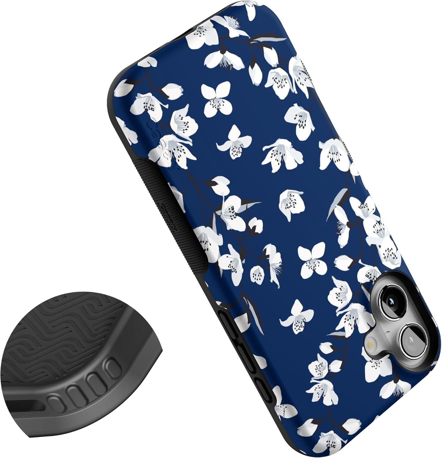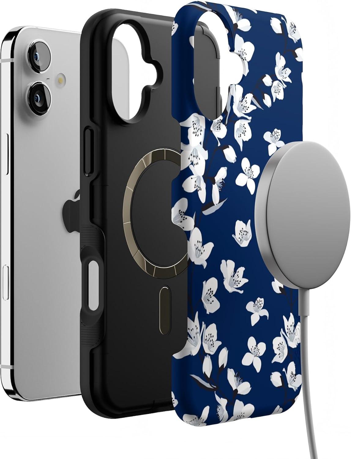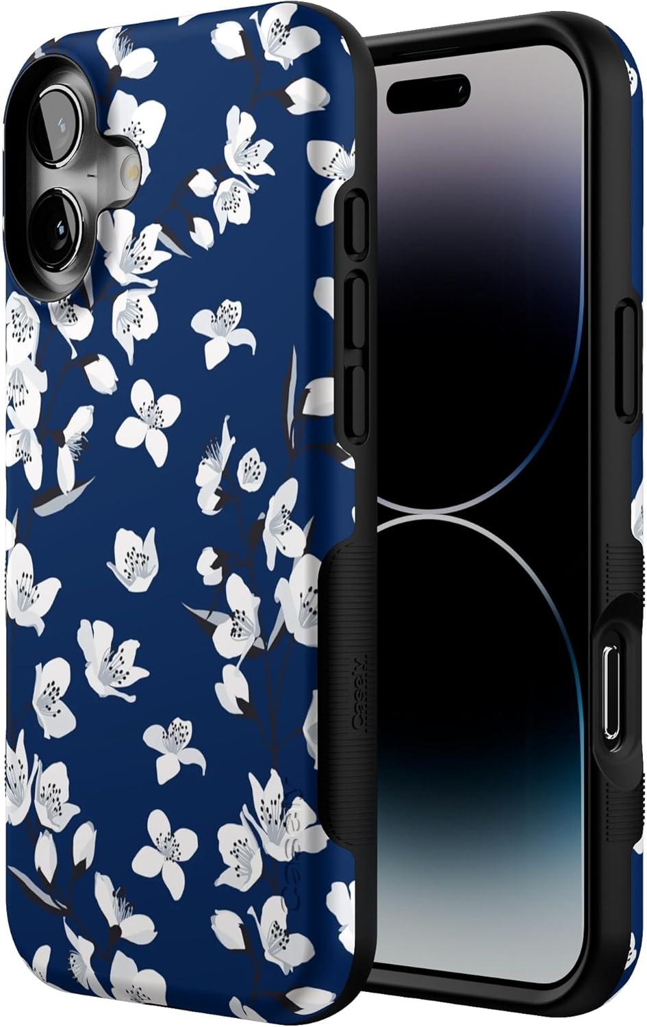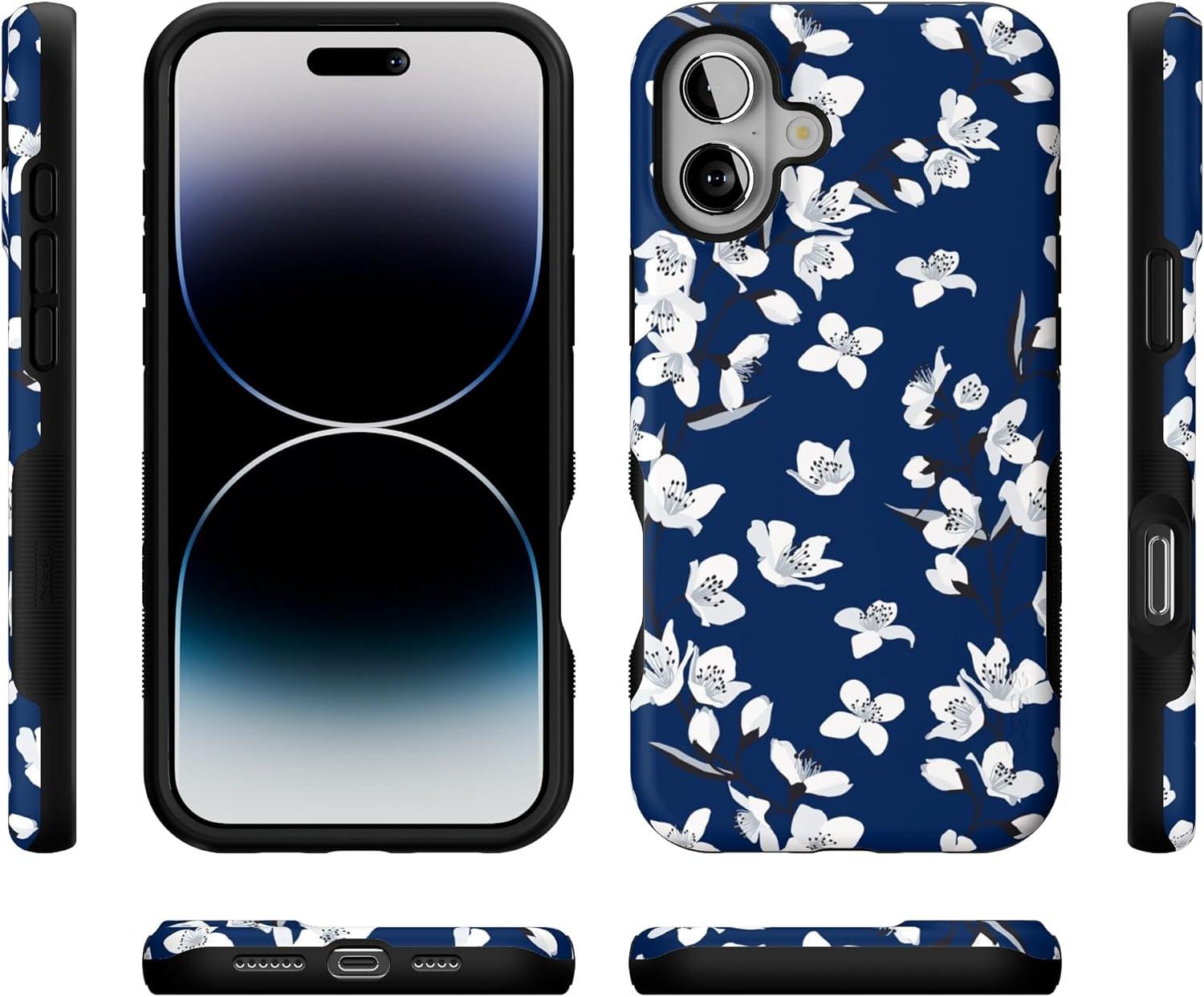 Casely iPhone 16 Plus Case | Bordeaux Rose | Moody Monochrome | Bold Protective Design | Compatible with MagSafe(Floral Forest | Navy Cherry Blossom)