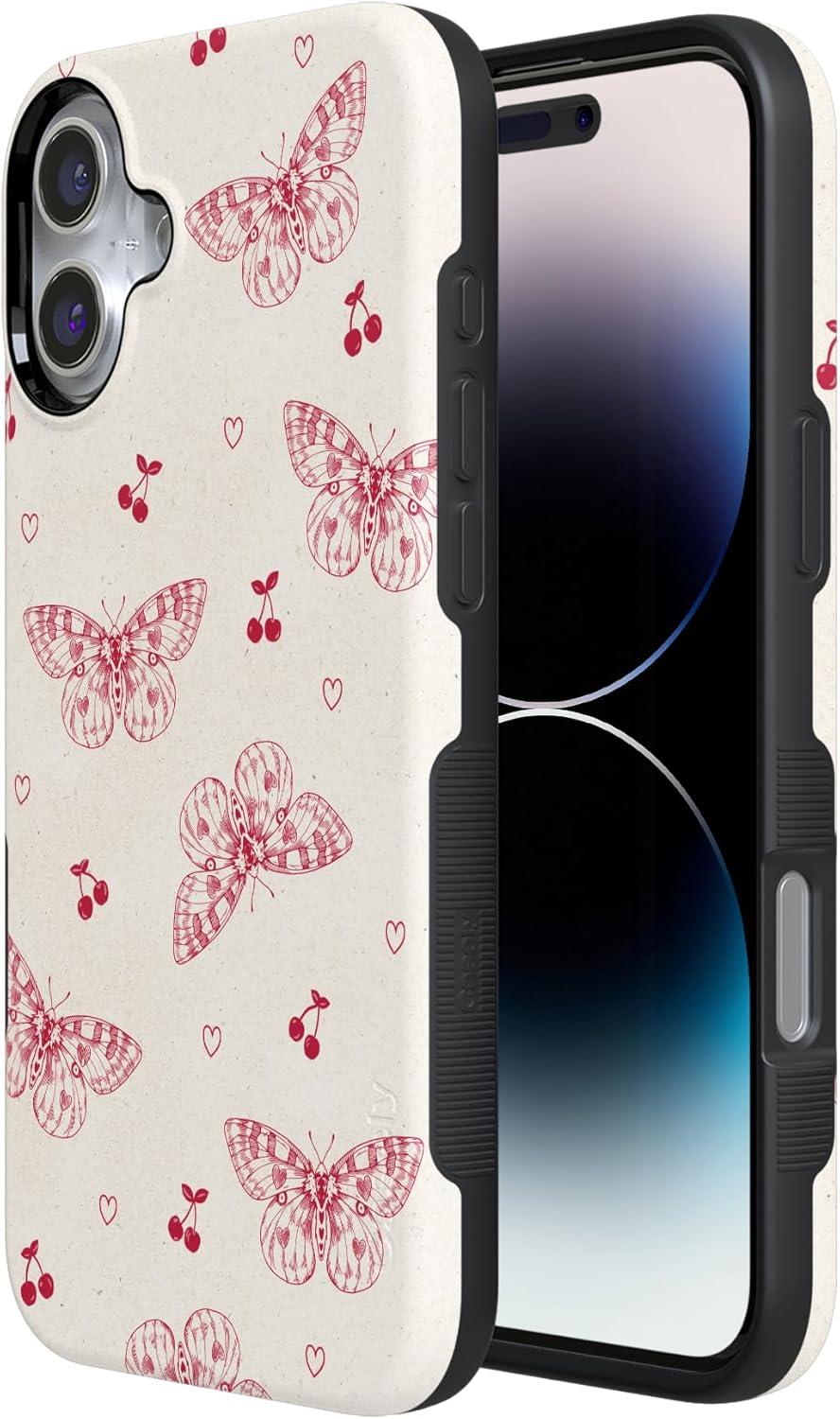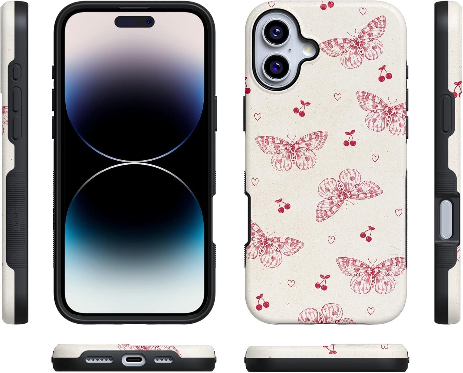 Casely iPhone 16 Plus Case | Bordeaux Rose | Moody Monochrome | Bold Protective Design | Compatible with MagSafe(Heart Flutters | Butterfly)