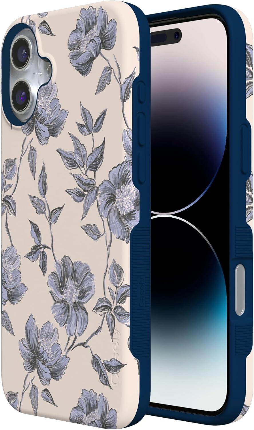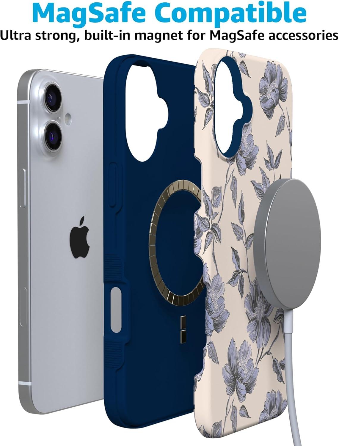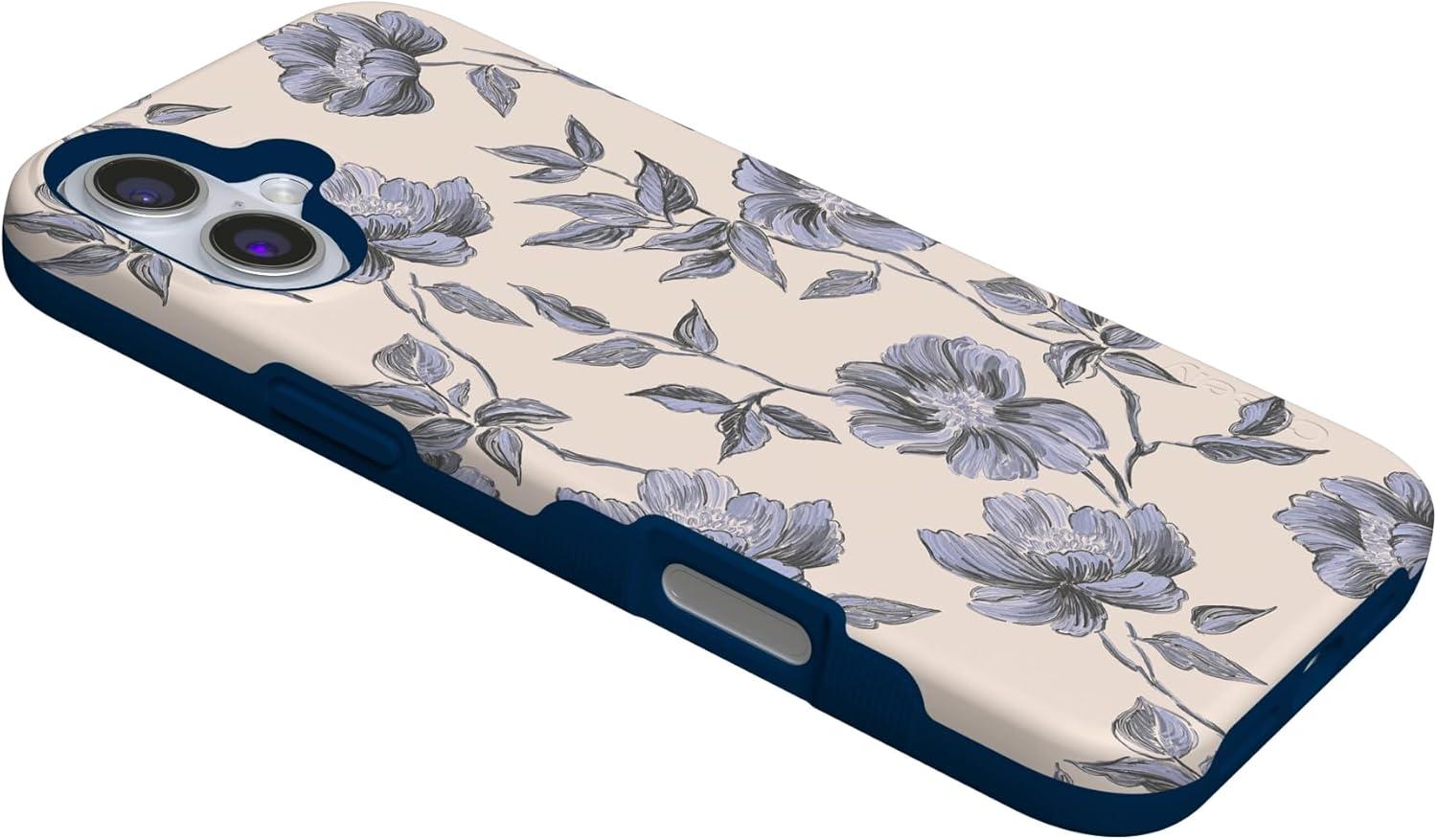 Casely iPhone 16 Plus Case | Bordeaux Rose | Moody Monochrome | Bold Protective Design | Compatible with MagSafe(Ink & Iris | Vintage Floral)
