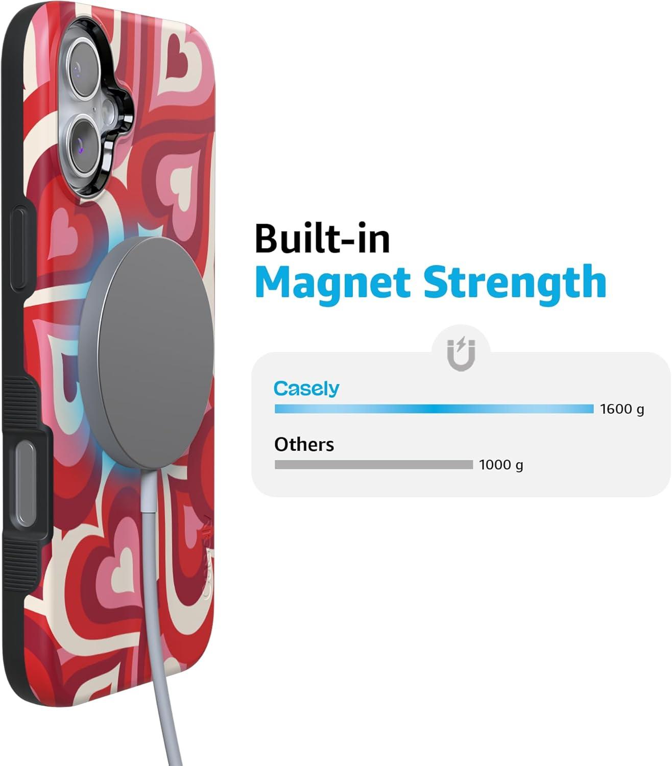Casely iPhone 16 Plus Case | Bordeaux Rose | Moody Monochrome | Bold Protective Design | Compatible with MagSafe(Love Song Remix | Ombre Hearts)