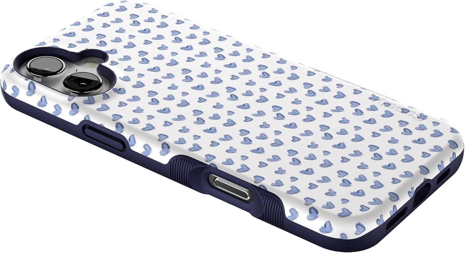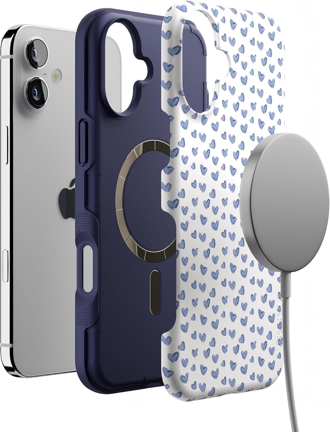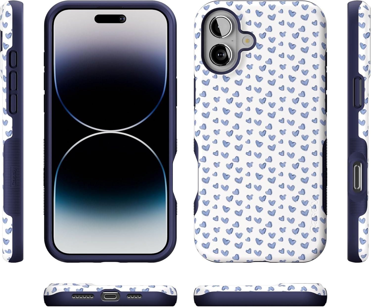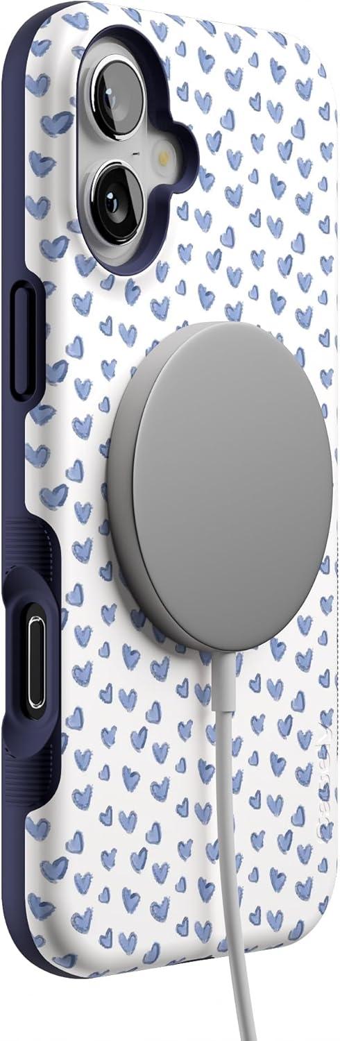 Casely iPhone 16 Plus Case | Bordeaux Rose | Moody Monochrome | Bold Protective Design | Compatible with MagSafe(Lovebug | Blue Hearts)
