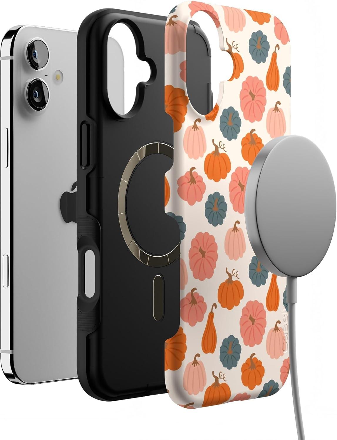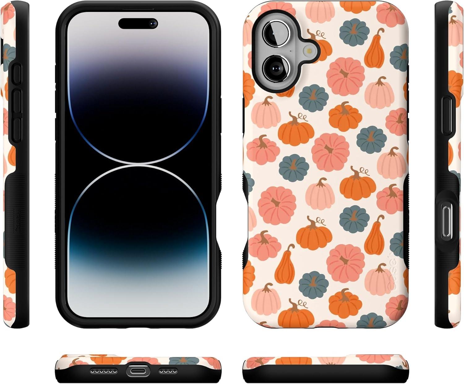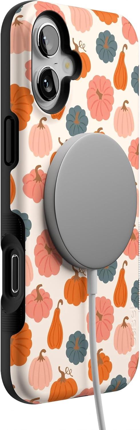 Casely iPhone 16 Plus Case | Bordeaux Rose | Moody Monochrome | Bold Protective Design | Compatible with MagSafe(Oh My Gourd | Pumpkin Patch)