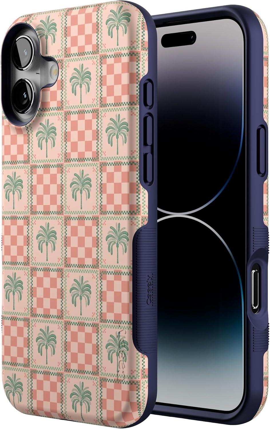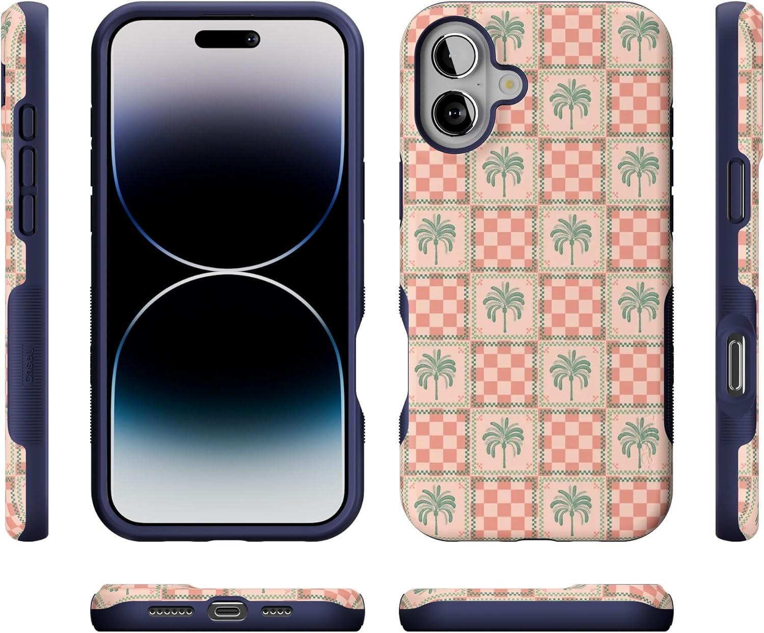 Casely iPhone 16 Plus Case | Bordeaux Rose | Moody Monochrome | Bold Protective Design | Compatible with MagSafe(Palm Beach | The Social Club)