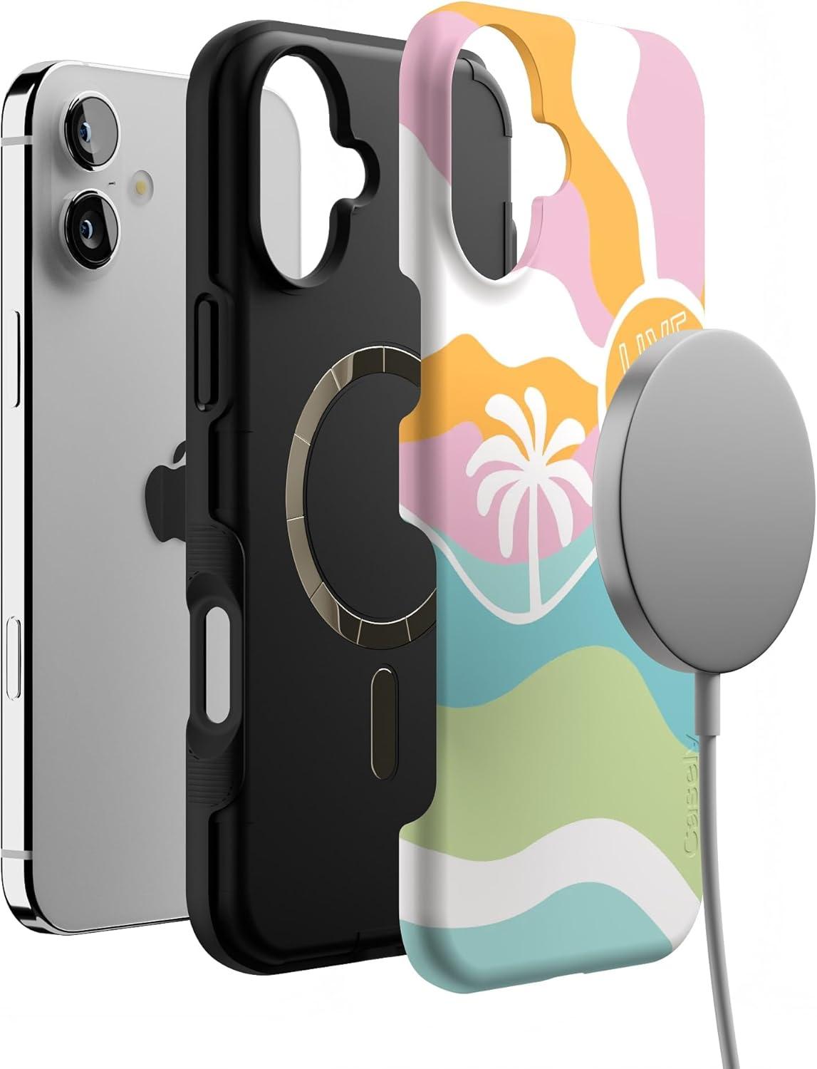 Casely iPhone 16 Plus Case | Bordeaux Rose | Moody Monochrome | Bold Protective Design | Compatible with MagSafe(Pura Vida | Tropical Dreams)