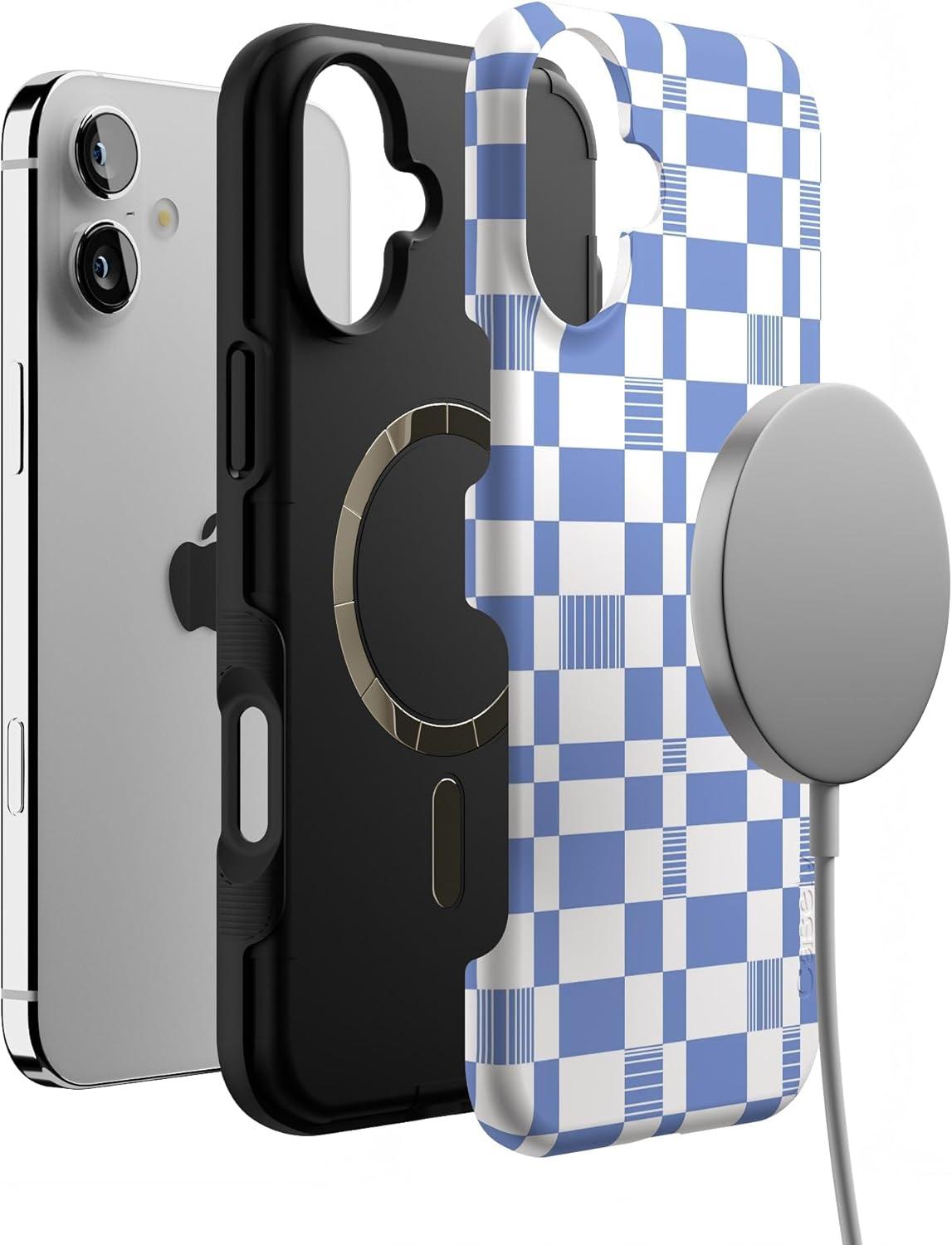 Casely iPhone 16 Plus Case | Bordeaux Rose | Moody Monochrome | Bold Protective Design | Compatible with MagSafe(Reality Check | Periwinkle)