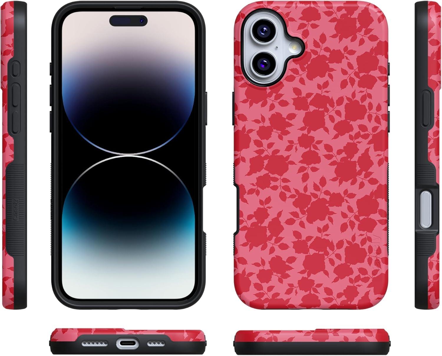 Casely iPhone 16 Plus Case | Bordeaux Rose | Moody Monochrome | Bold Protective Design | Compatible with MagSafe(Rose Garden | Red Aesthetic)