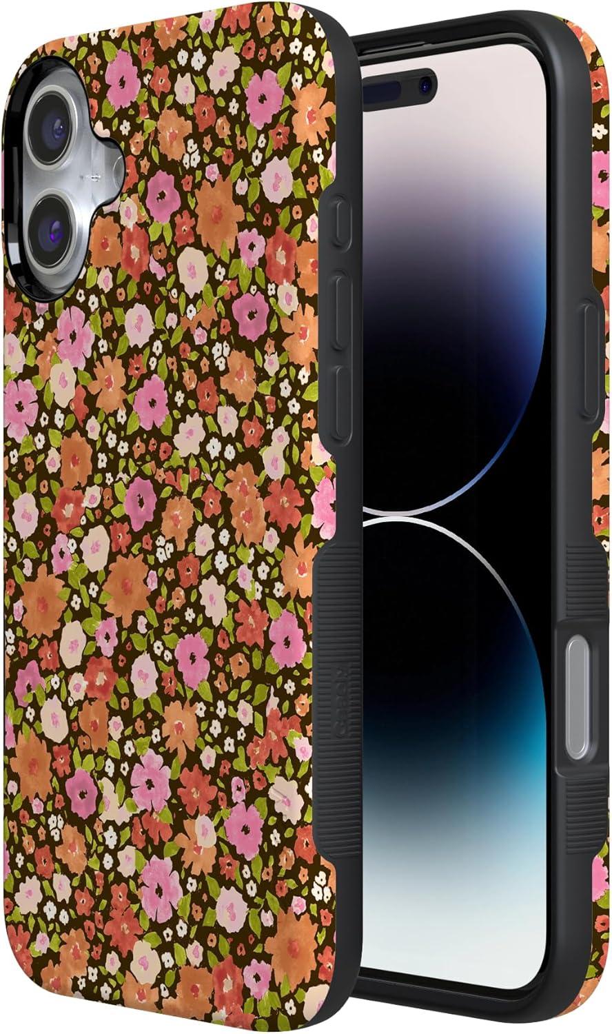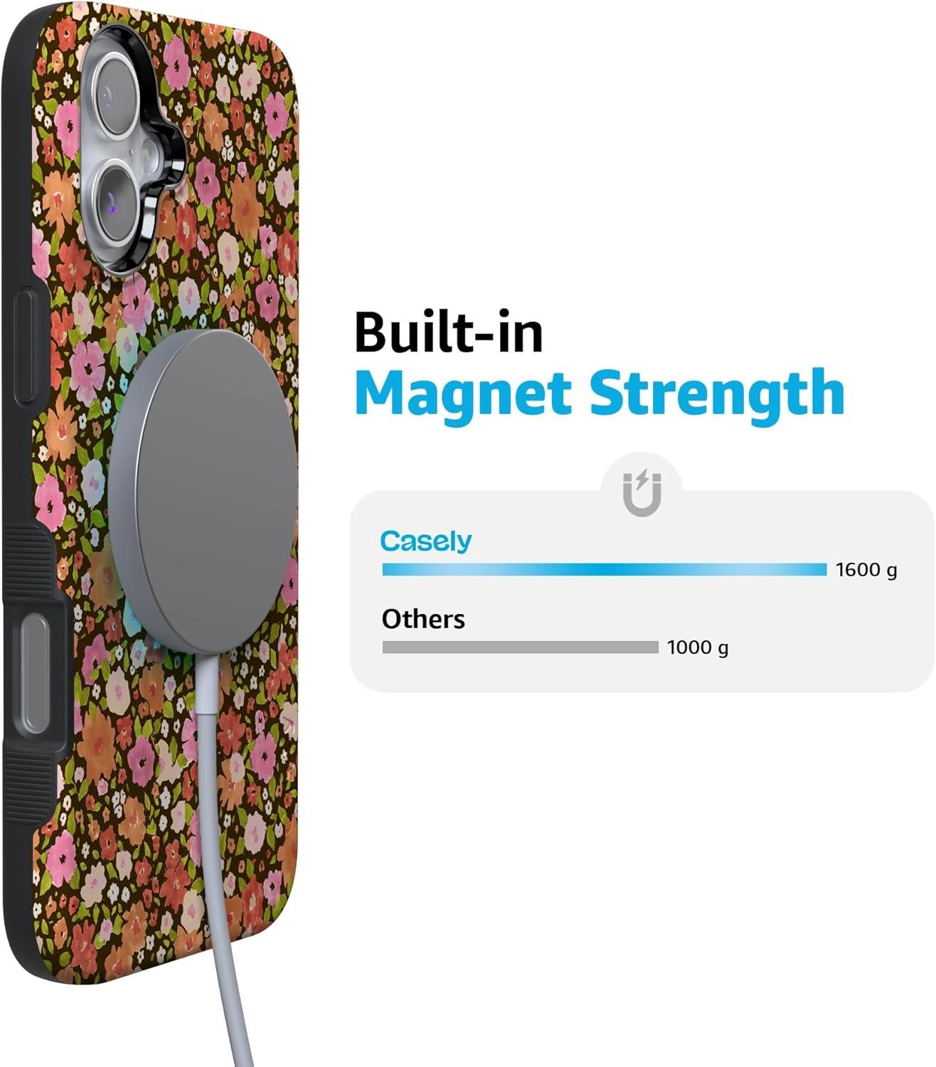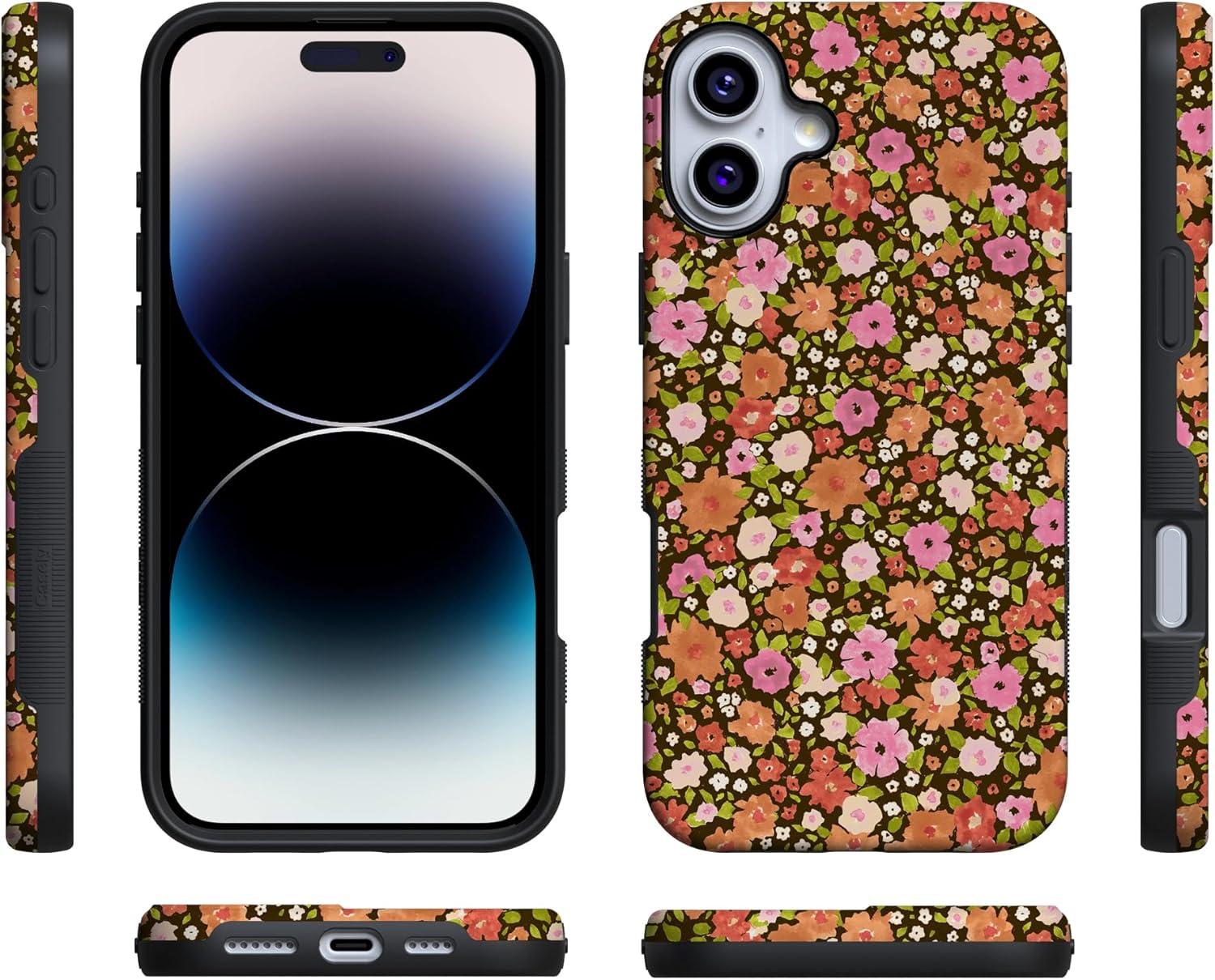 Casely iPhone 16 Plus Case | Bordeaux Rose | Moody Monochrome | Bold Protective Design | Compatible with MagSafe(Rustic Roses | Boho Bouquet)