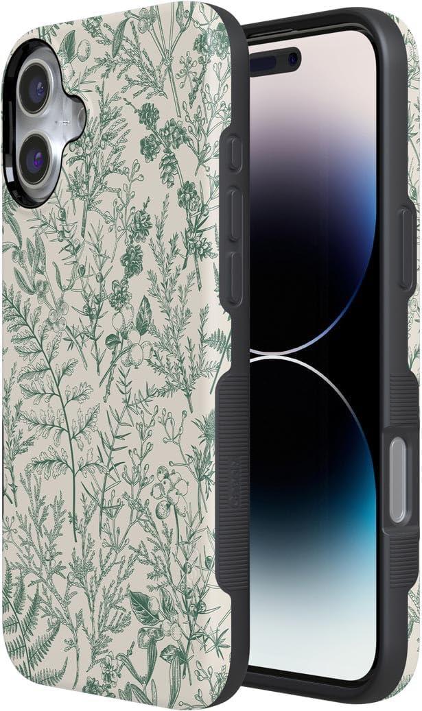 Casely iPhone 16 Plus Case | Bordeaux Rose | Moody Monochrome | Bold Protective Design | Compatible with MagSafe(Sage Garden | Green Floral)