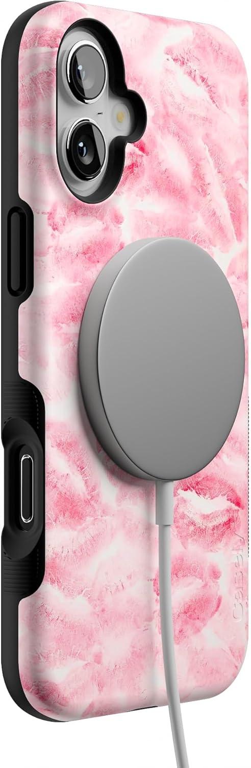 Casely iPhone 16 Plus Case | Bordeaux Rose | Moody Monochrome | Bold Protective Design | Compatible with MagSafe(Sealed with a Kiss | Pink Lipstick)