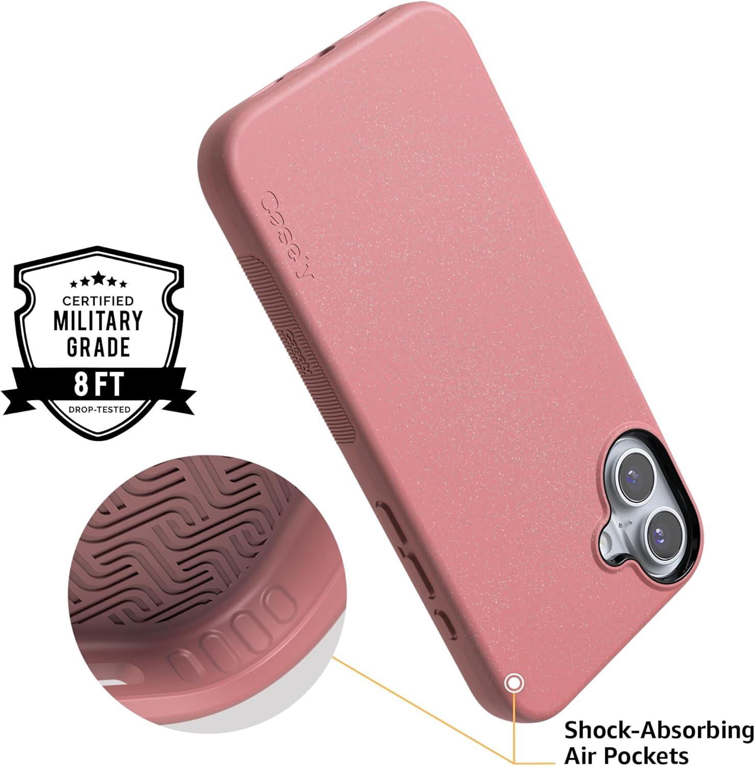 Casely iPhone 16 Plus Case | Bordeaux Rose | Moody Monochrome | Bold Protective Design | Compatible with MagSafe(Starfish Wishes | Coral Pink Shimmer)
