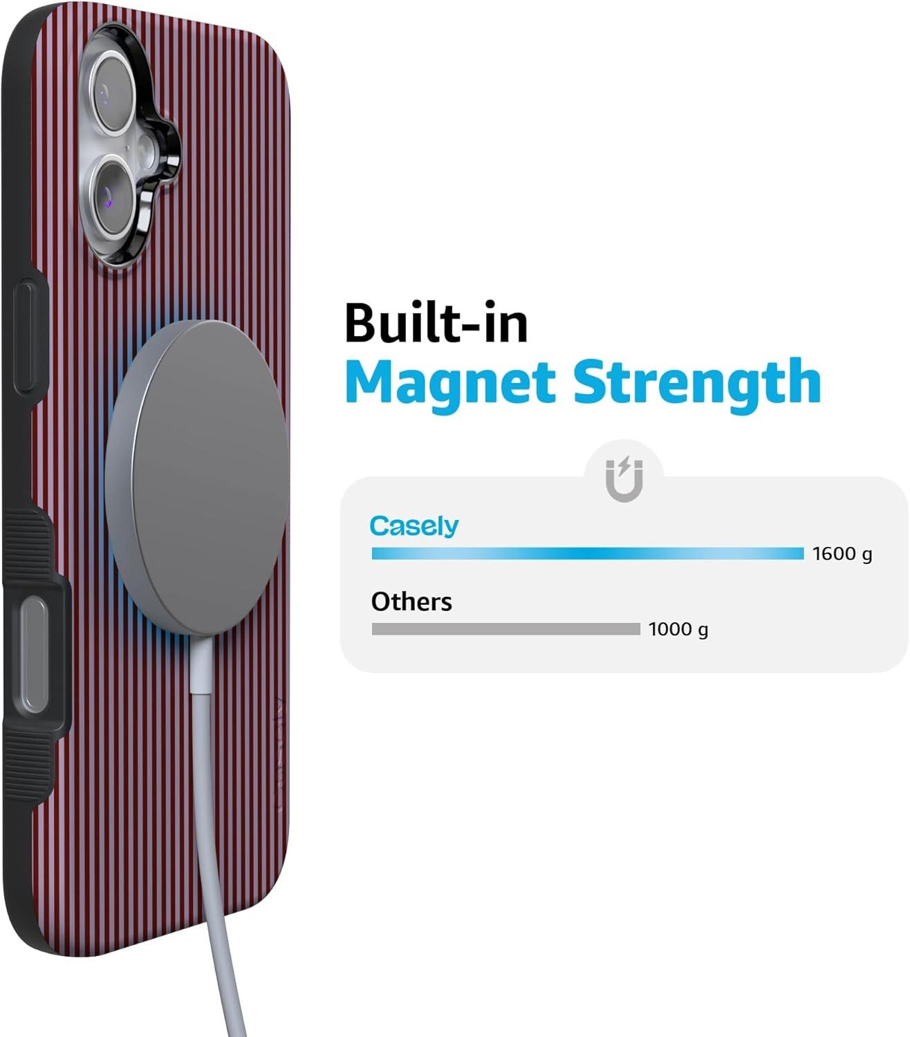 Casely iPhone 16 Plus Case | Bordeaux Rose | Moody Monochrome | Bold Protective Design | Compatible with MagSafe(Stripes and the City | Tiny Pinstripe)