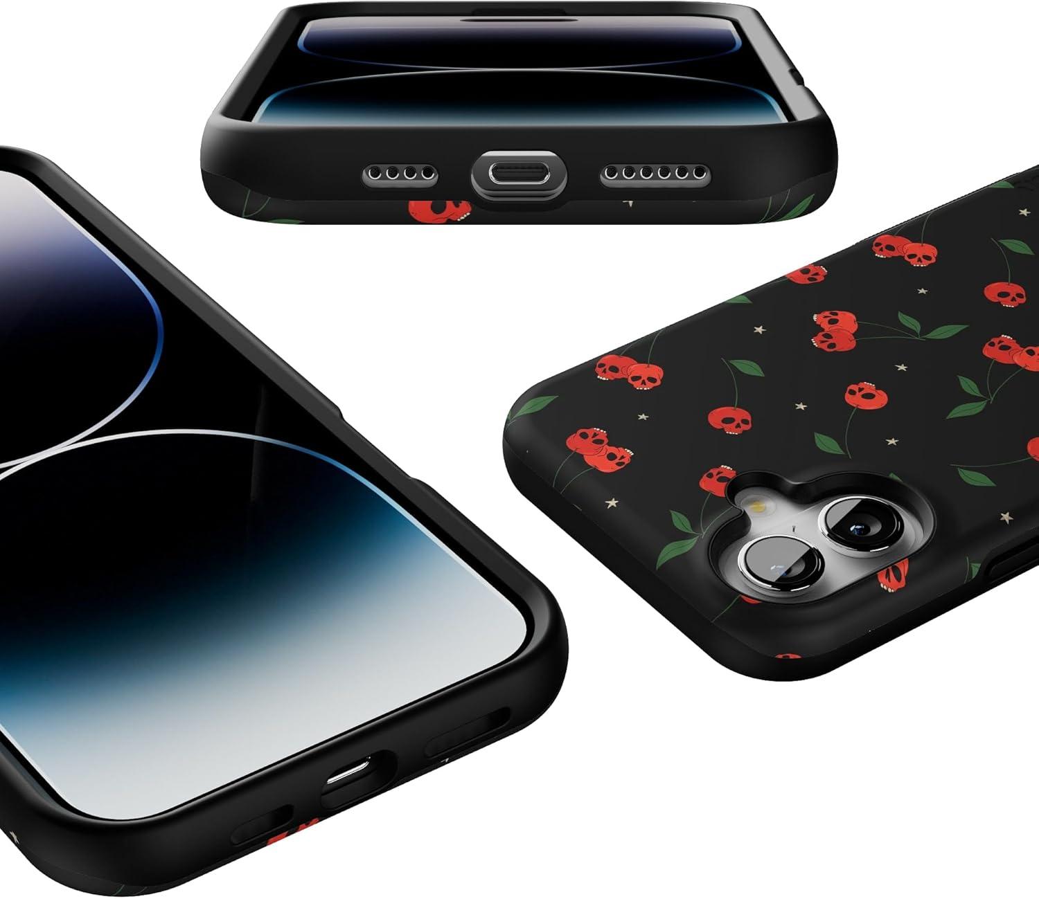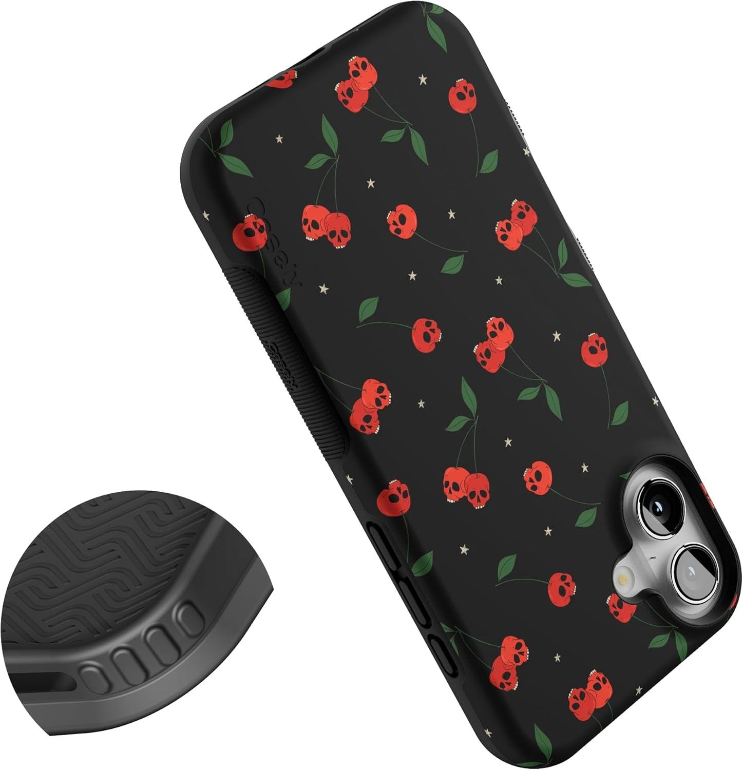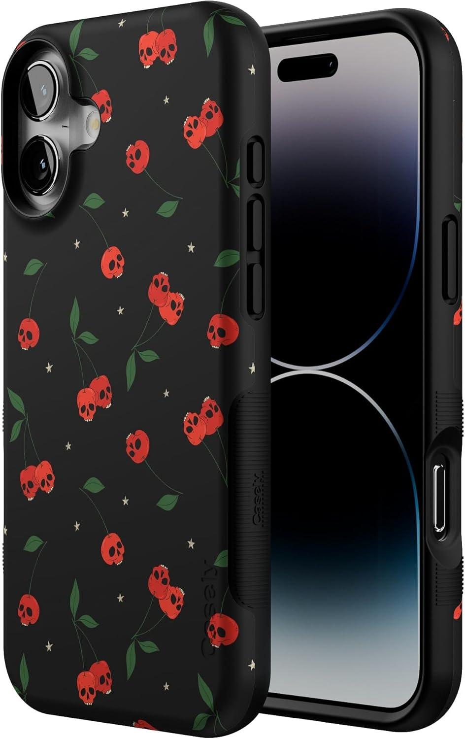 Casely iPhone 16 Plus Case | Bordeaux Rose | Moody Monochrome | Bold Protective Design | Compatible with MagSafe(Sweet Revenge | Cherry Skulls)