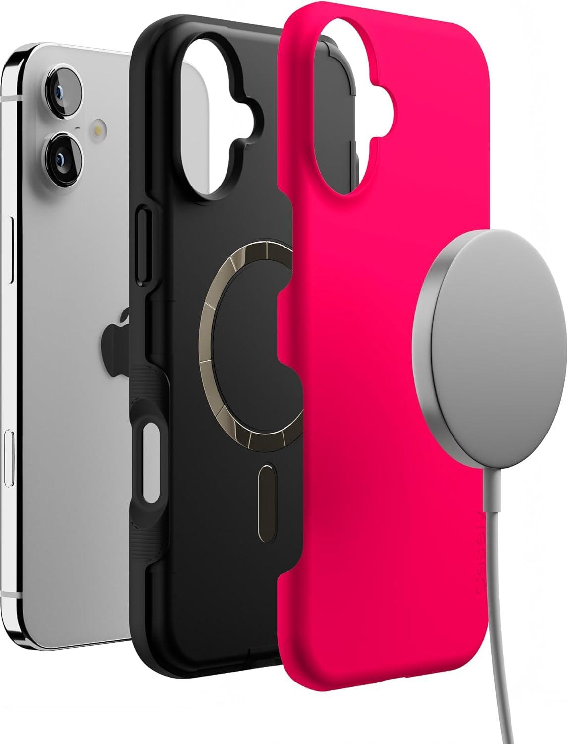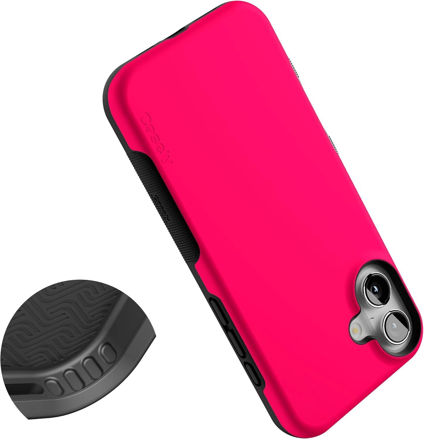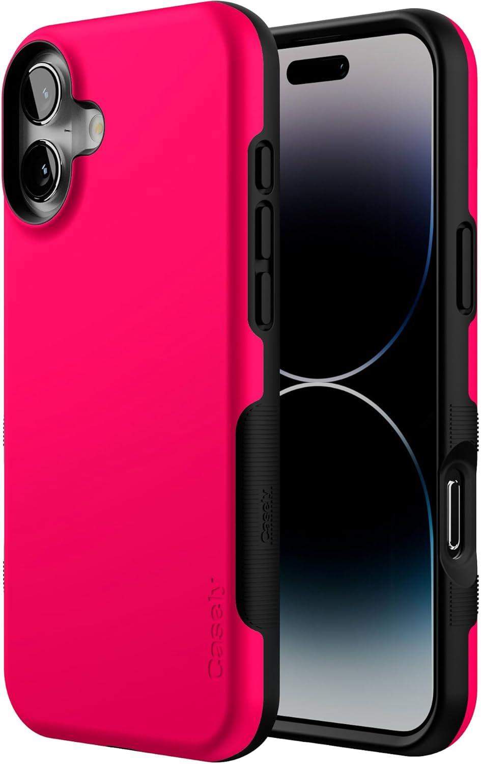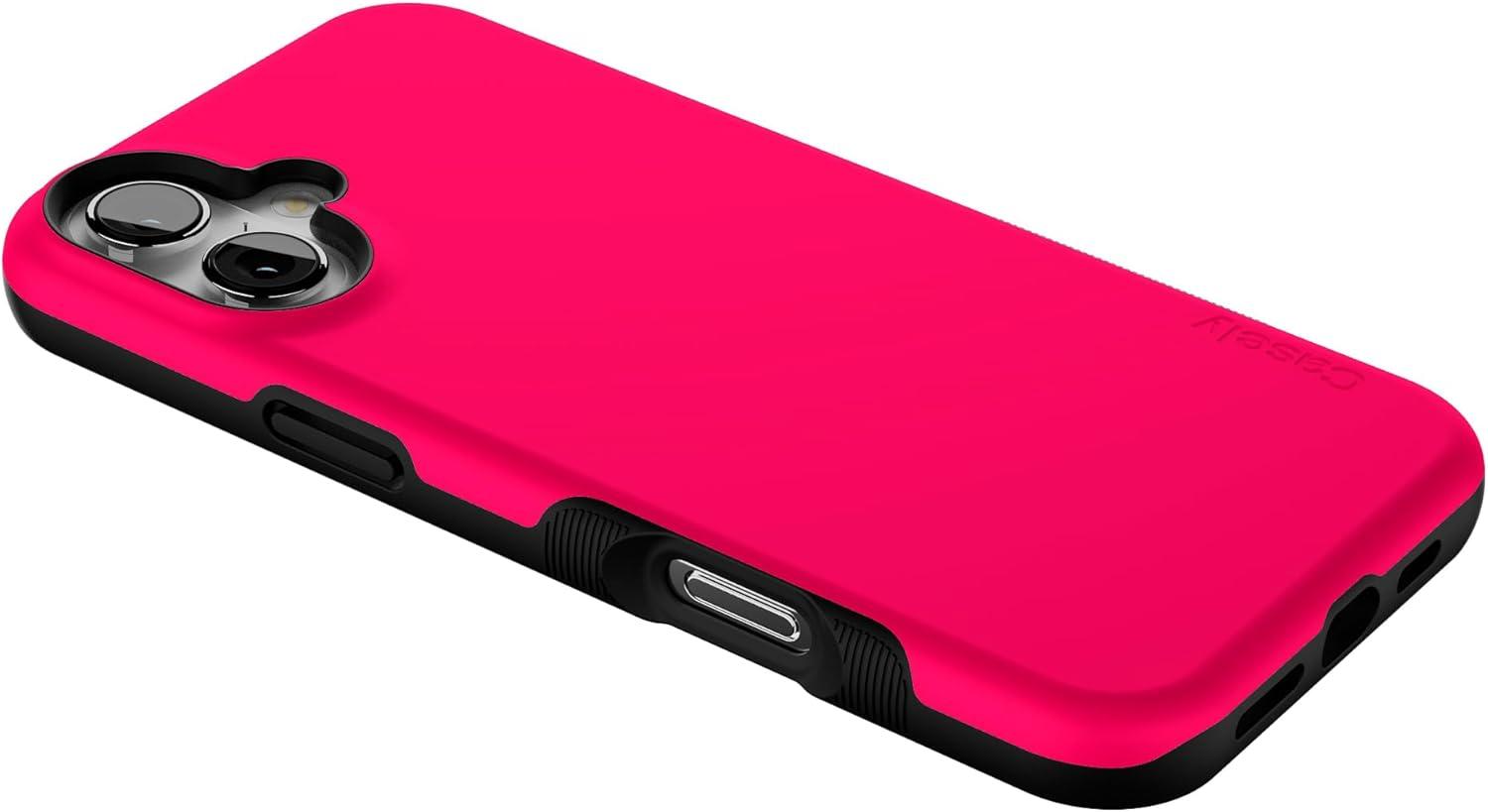Casely iPhone 16 Plus Case | Bordeaux Rose | Moody Monochrome | Bold Protective Design | Compatible with MagSafe(Think Pink | Solid Neon Pink)