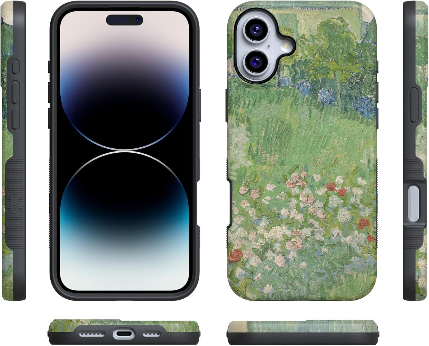 Casely iPhone 16 Plus Case | Bordeaux Rose | Moody Monochrome | Bold Protective Design | Compatible with MagSafe(Van Gogh | Vincent’s Admired Garden)
