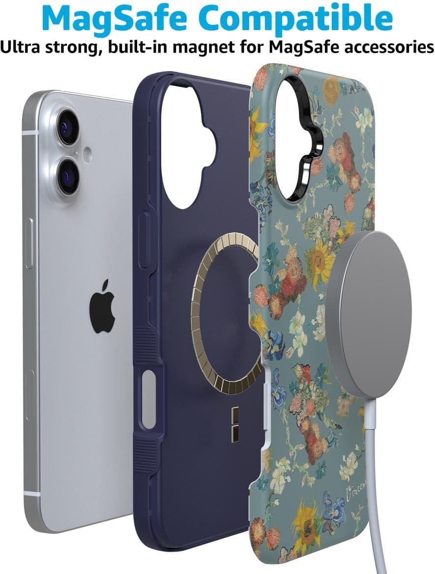 Casely iPhone 16 Plus Case | Bordeaux Rose | Moody Monochrome | Bold Protective Design | Compatible with MagSafe(Van Gogh | Vincent’s Flowers)