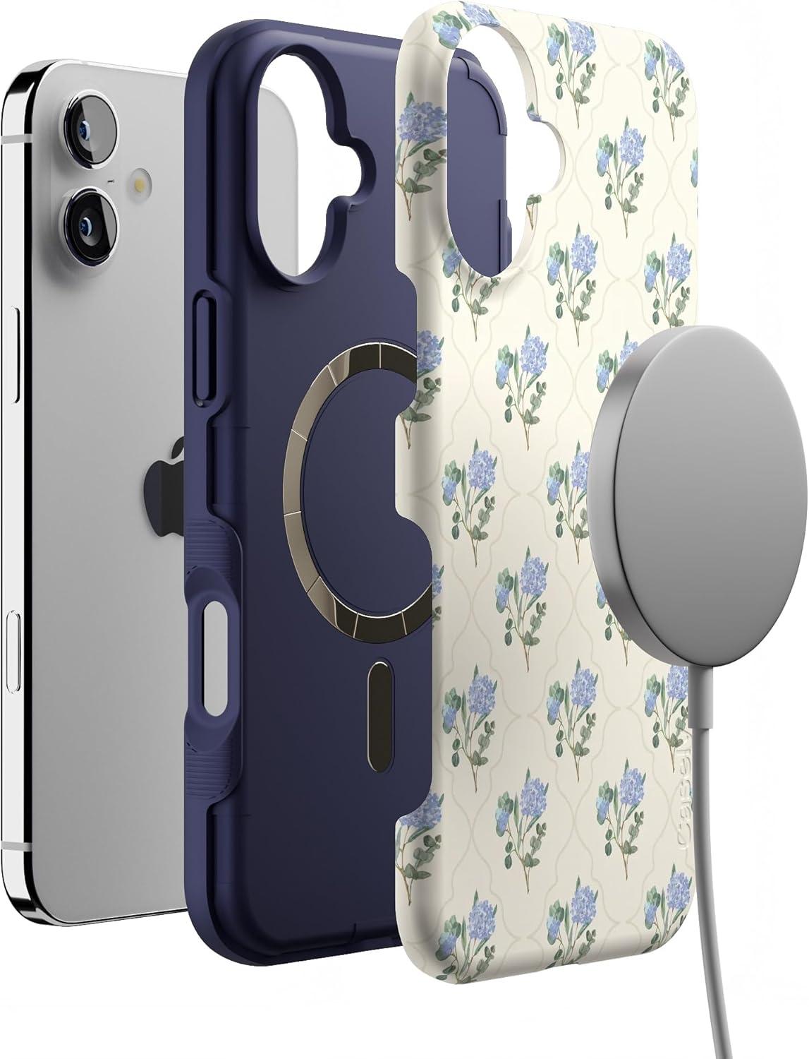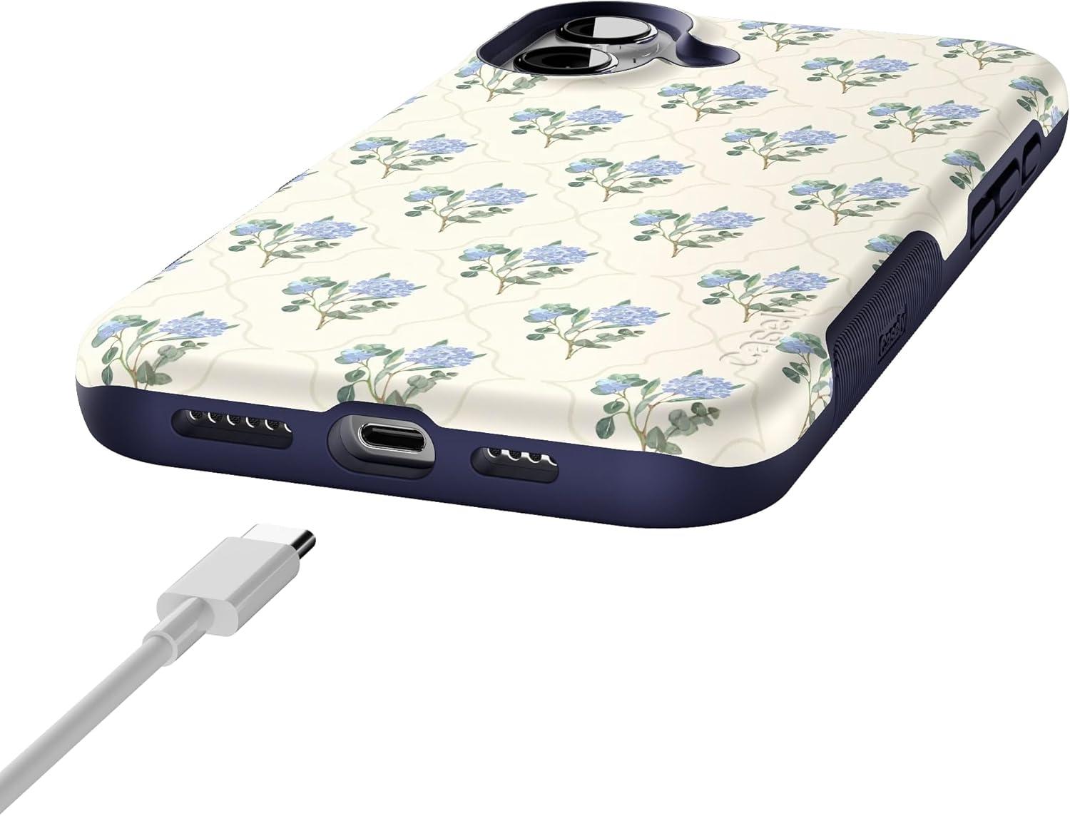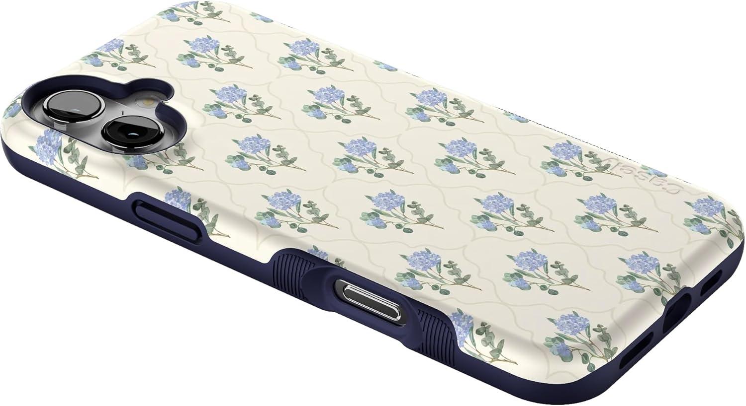 Casely iPhone 16 Plus Case | Bordeaux Rose | Moody Monochrome | Bold Protective Design | Compatible with MagSafe(Vintage Garden | Blue Hydrangea)