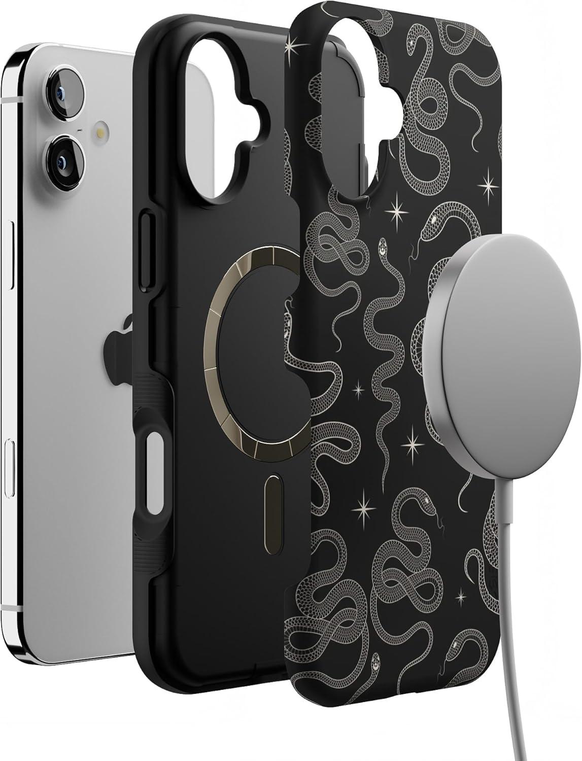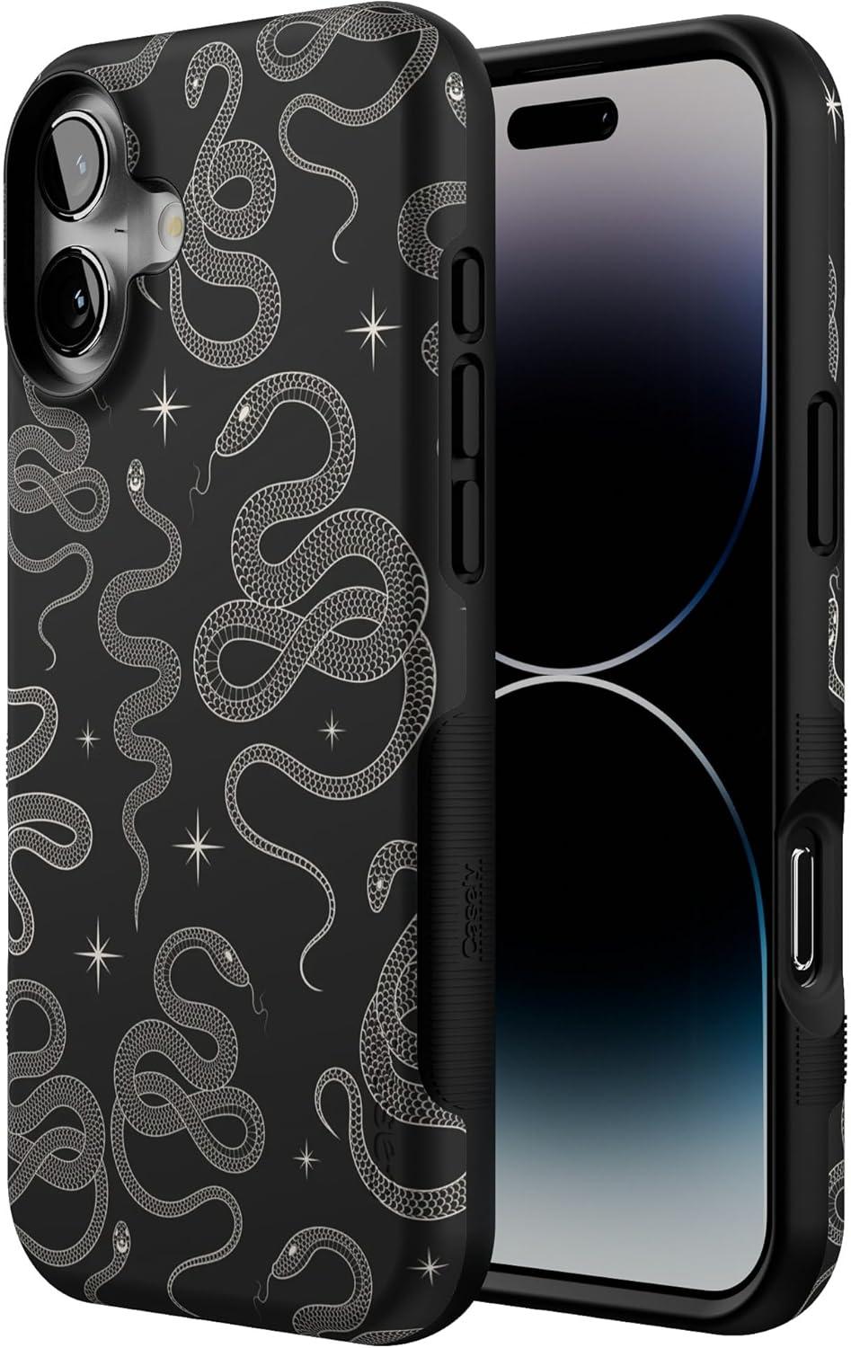 Casely iPhone 16 Plus Case | Bordeaux Rose | Moody Monochrome | Bold Protective Design | Compatible with MagSafe(We’re Ready For It | Black Serpent)