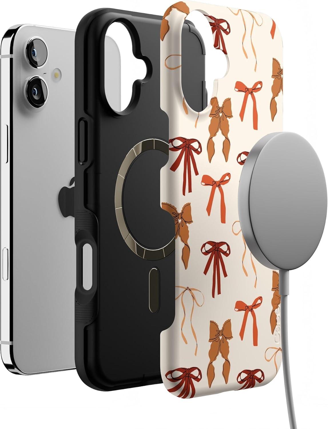 Casely iPhone 16 Plus Case | Fall Girlie | Pumpkin Spice Bows | Compatible with MagSafe | Bold Protective Design
