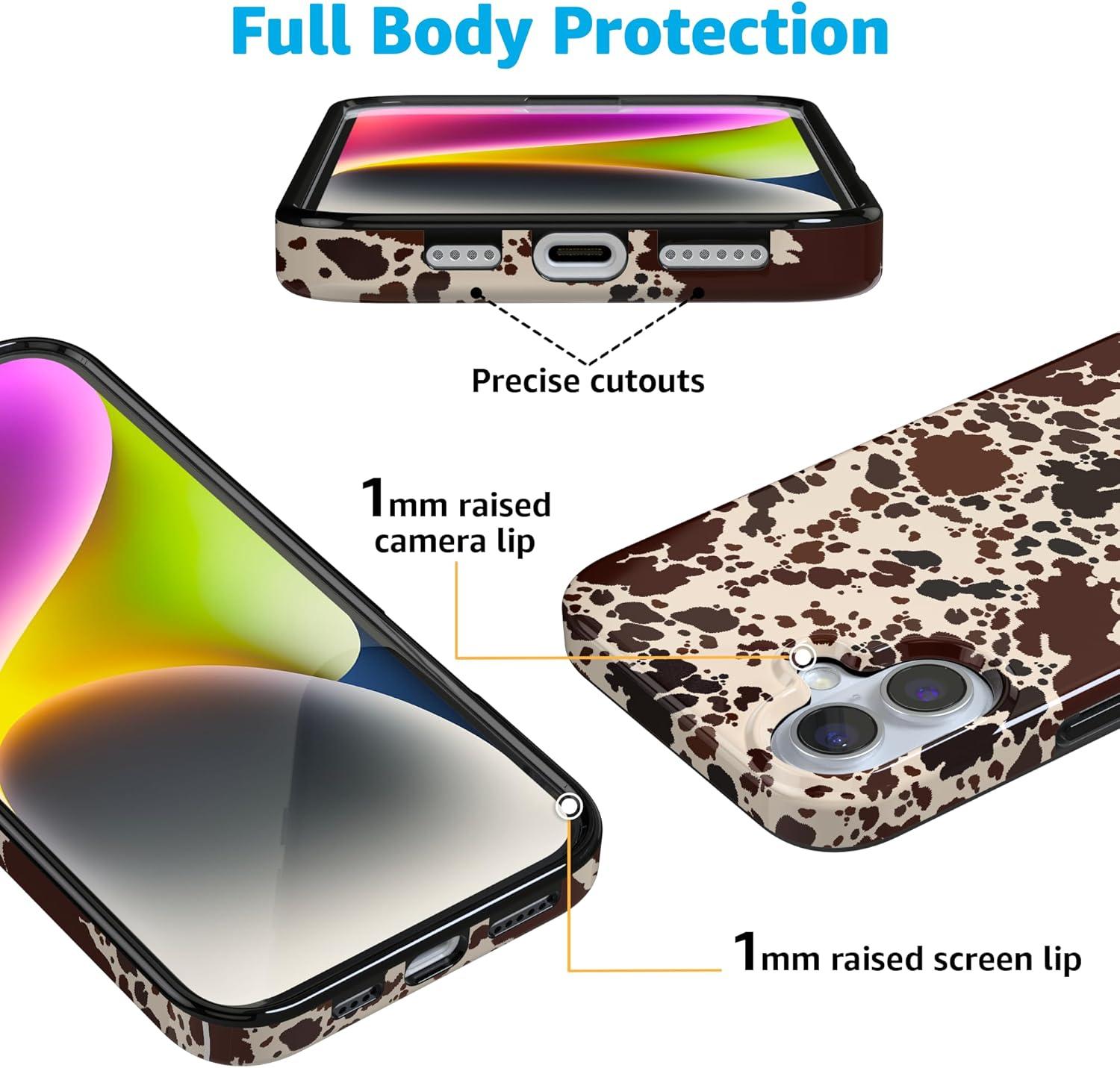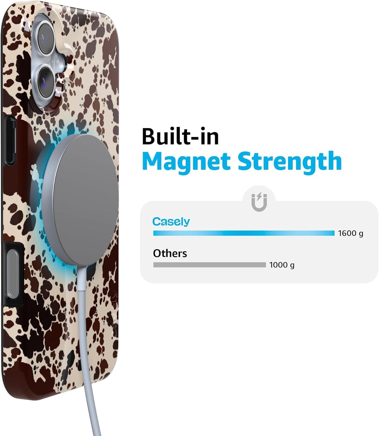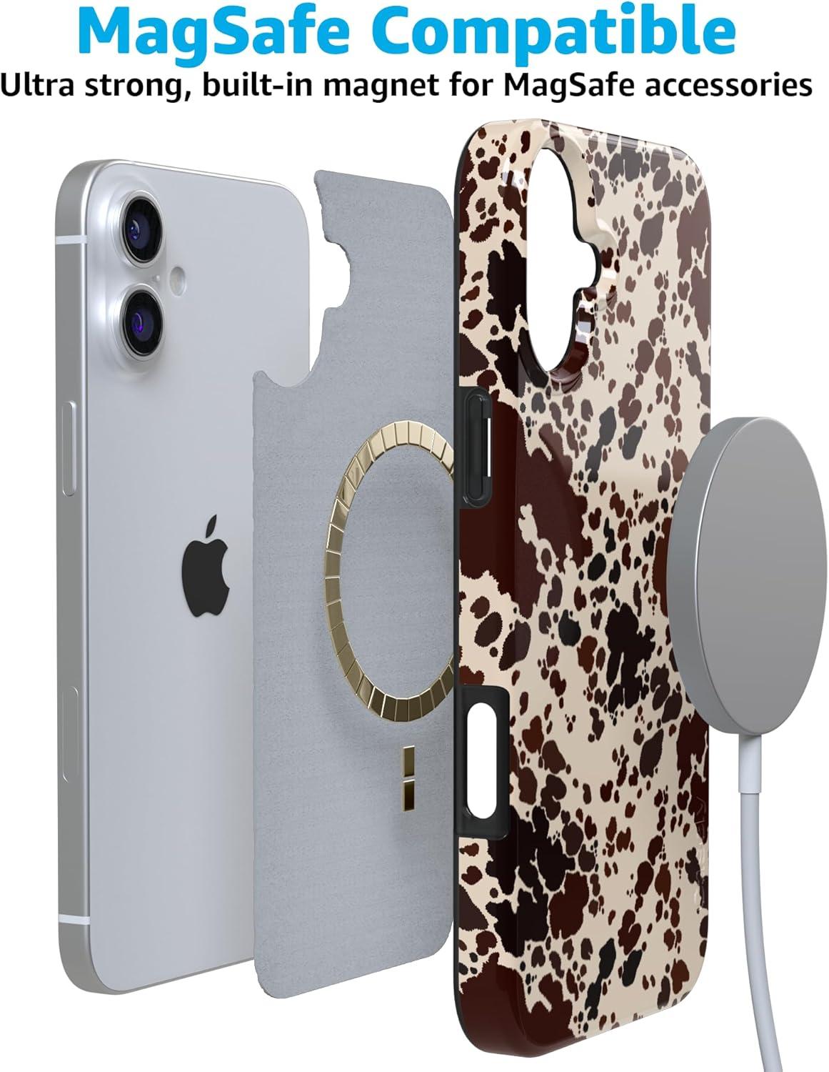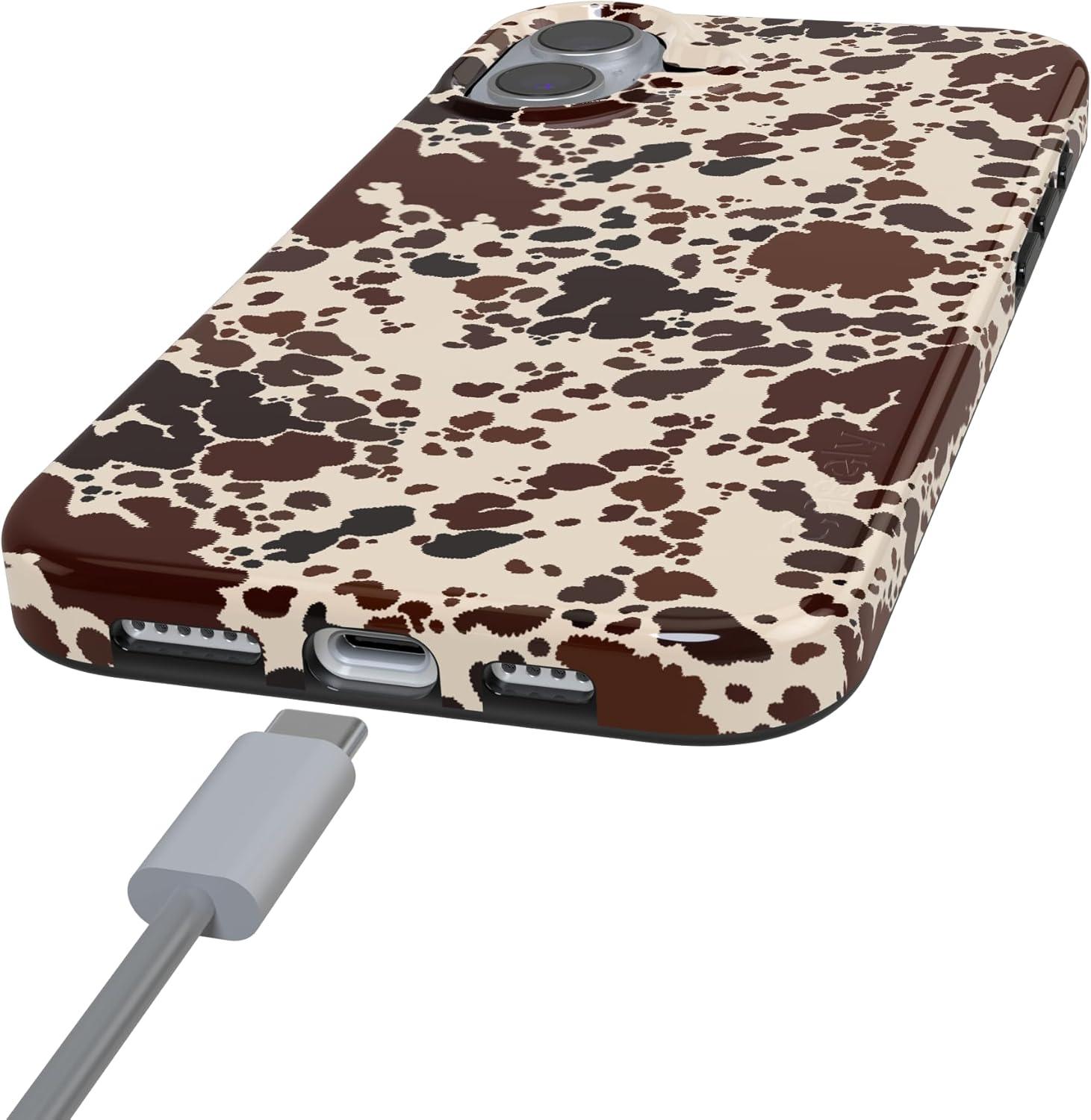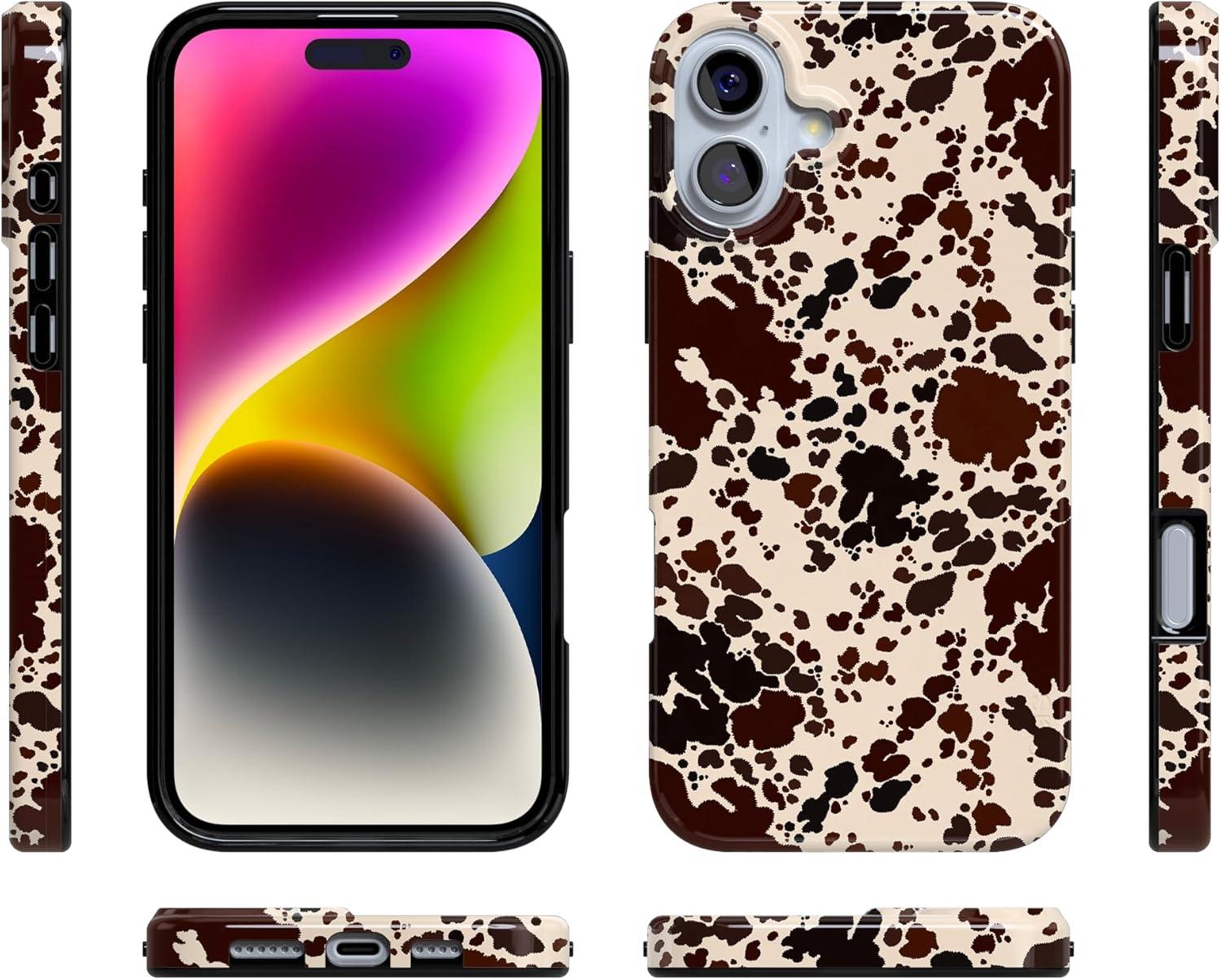 Casely iPhone 16 Plus Case | Full Bloom | Navy Floral | Classic Ultra Slim Case Design | Compatible with MagSafe(Cowgirl Envy | Cow Print)