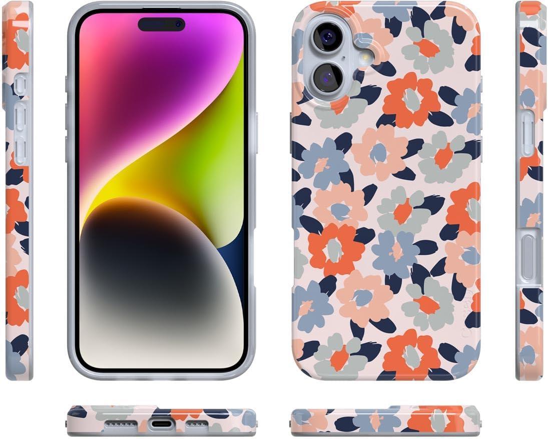 Casely iPhone 16 Plus Case | Full Bloom | Navy Floral | Classic Ultra Slim Case Design | Compatible with MagSafe(Field of Flowers | Pastel Floral)