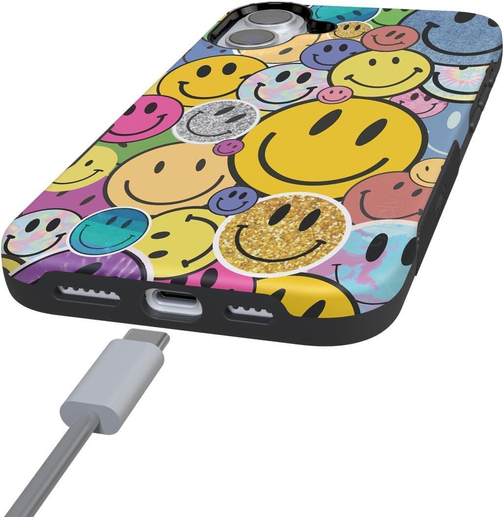 Casely iPhone 16 Plus Case | Poppy Meadows | Pastel Floral | Compatible with MagSafe | Bold Protective Design(All Smiles | Smiley Face Sticker)