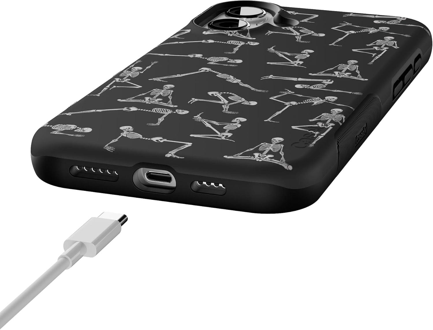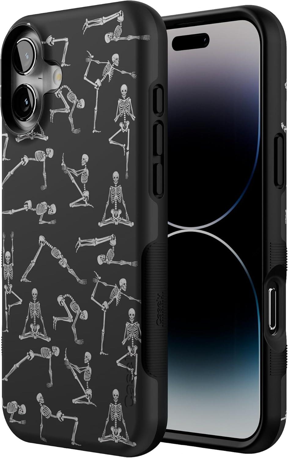 Casely iPhone 16 Plus Case | Poppy Meadows | Pastel Floral | Compatible with MagSafe | Bold Protective Design(Corpse Pose | Skeleton Yoga)