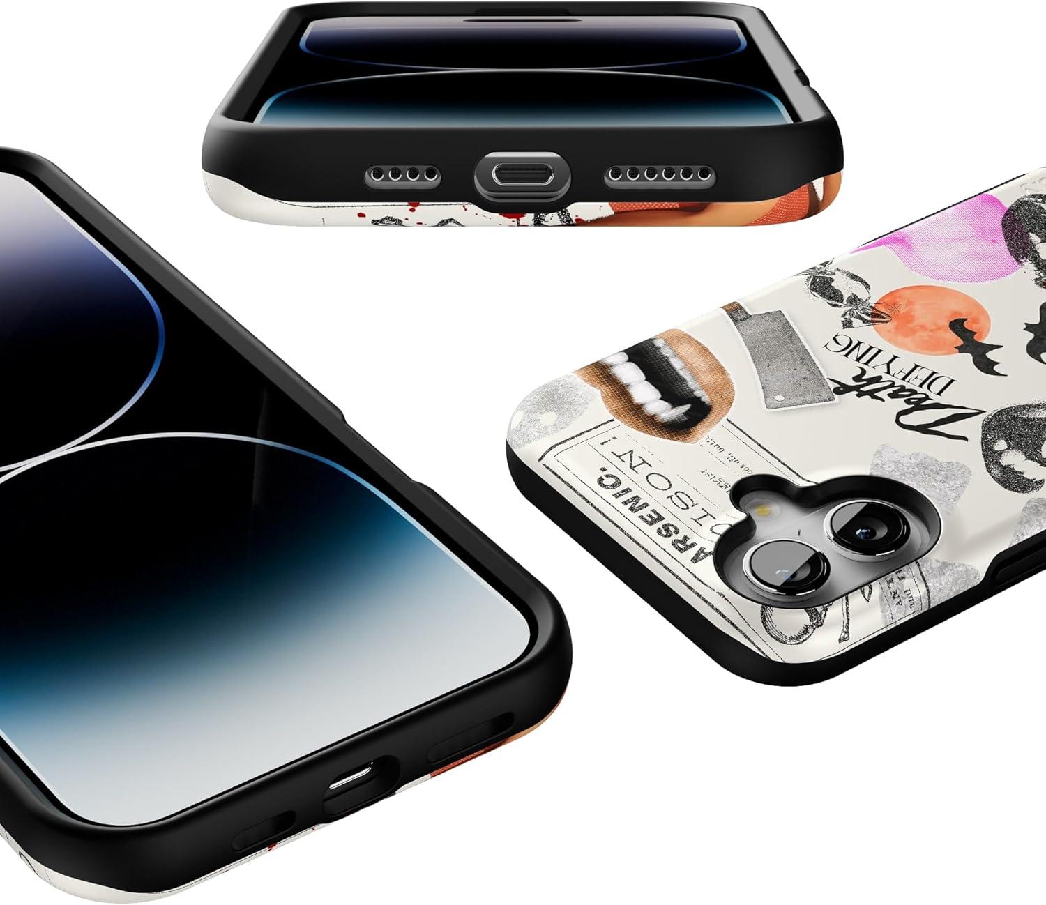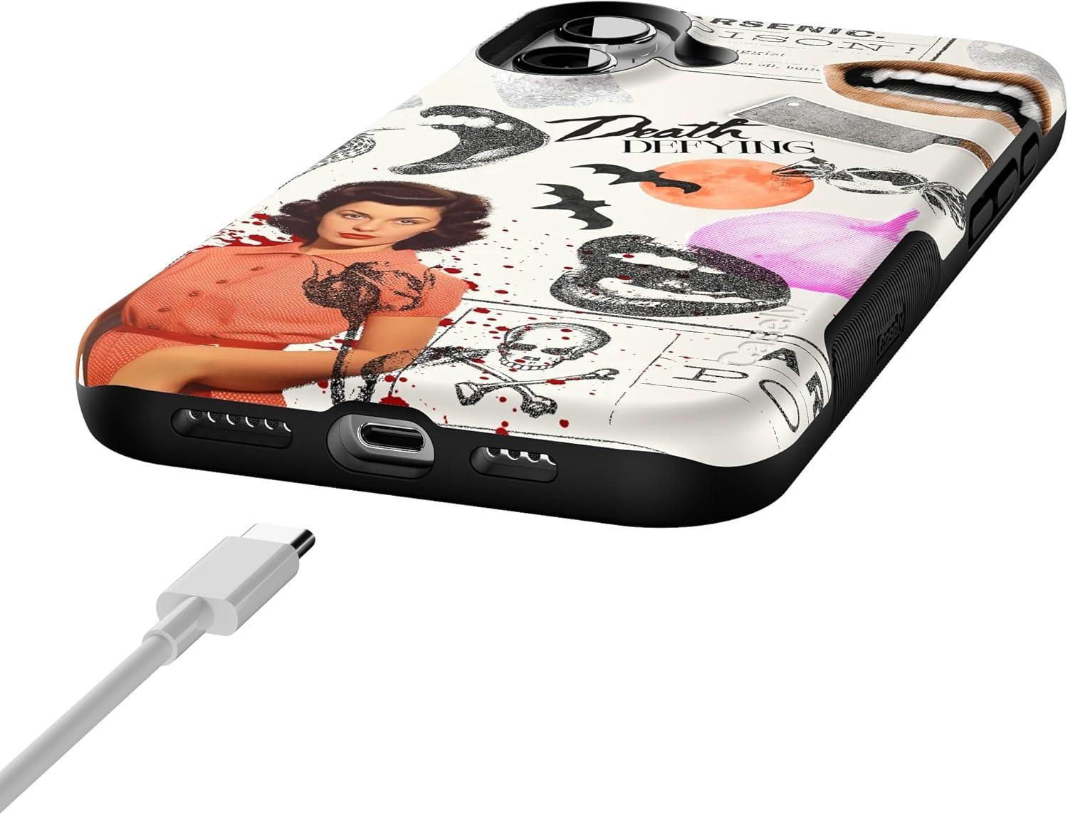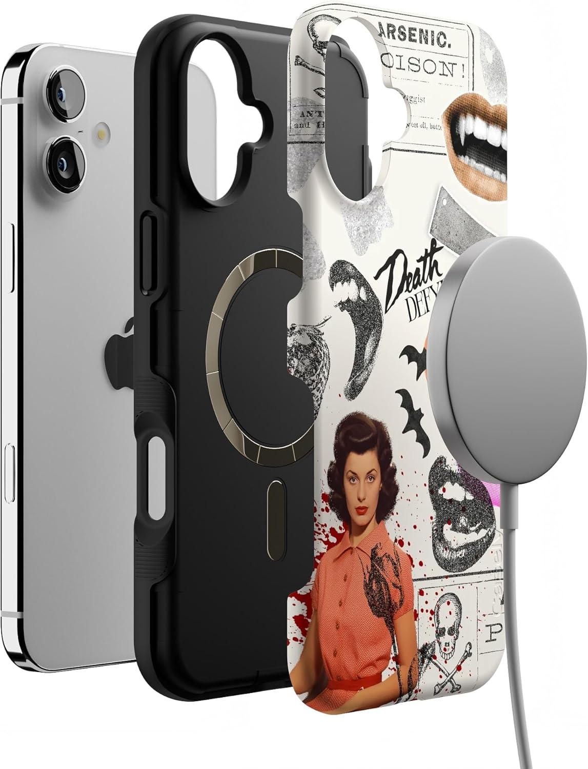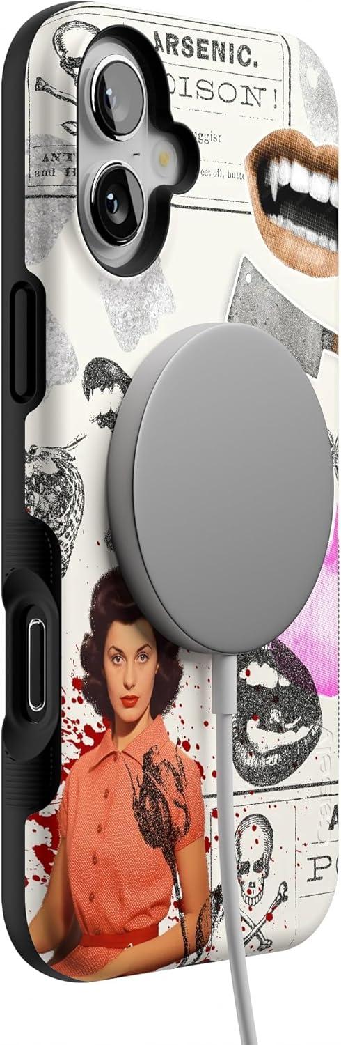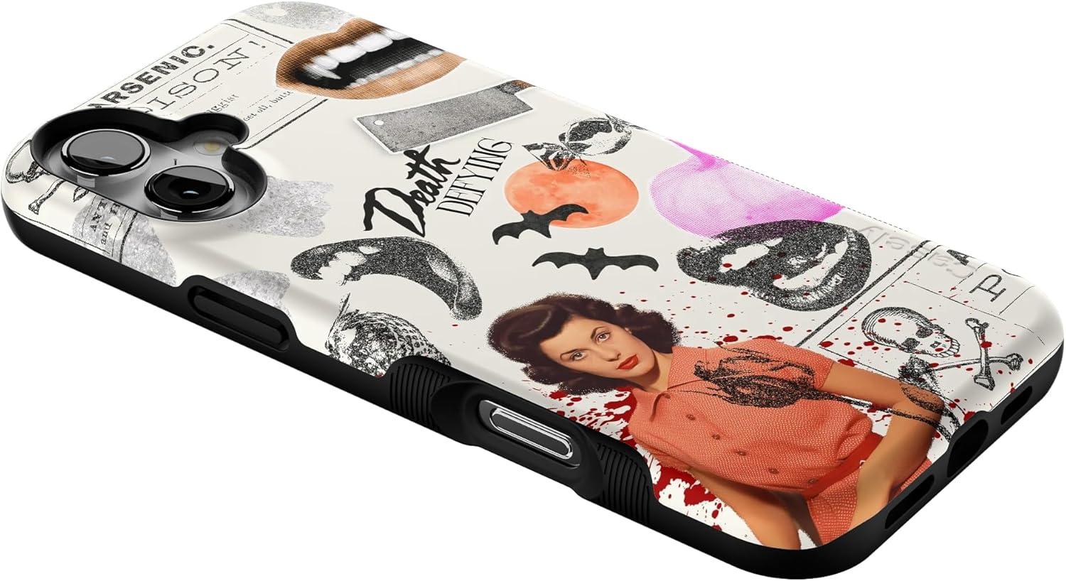 Casely iPhone 16 Plus Case | Poppy Meadows | Pastel Floral | Compatible with MagSafe | Bold Protective Design(If You Dare | Horror Collage)
