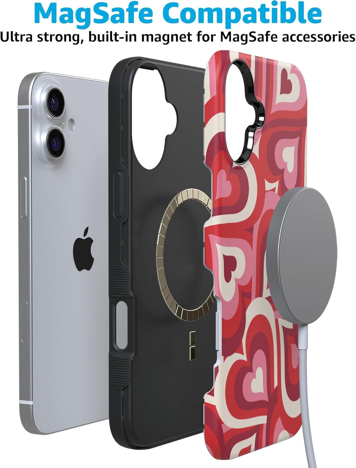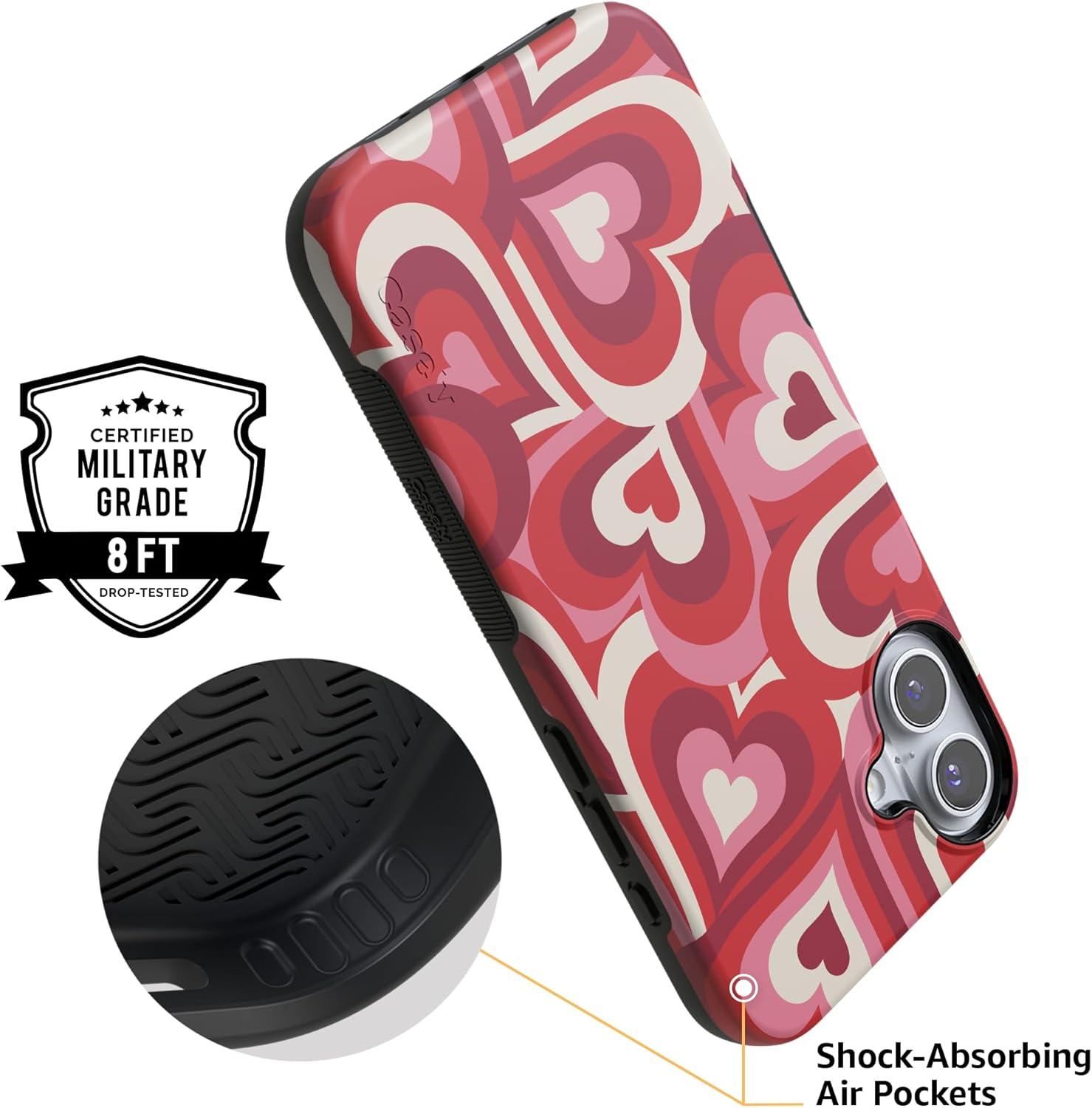 Casely iPhone 16 Plus Case | Poppy Meadows | Pastel Floral | Compatible with MagSafe | Bold Protective Design(Love Song Remix | Ombre Hearts)