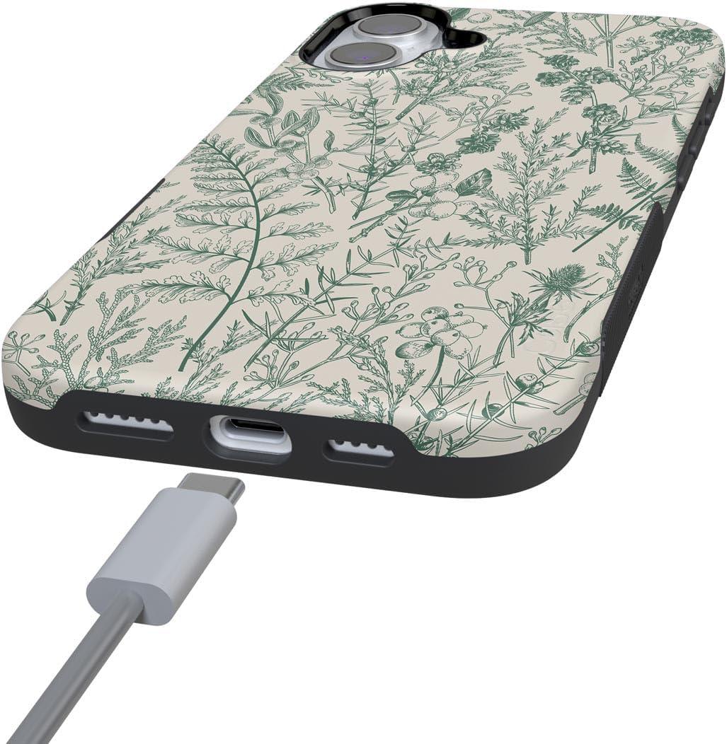 Casely iPhone 16 Plus Case | Poppy Meadows | Pastel Floral | Compatible with MagSafe | Bold Protective Design(Sage Garden | Green Floral)