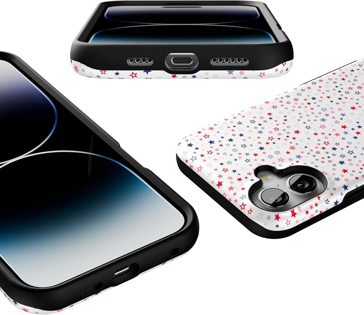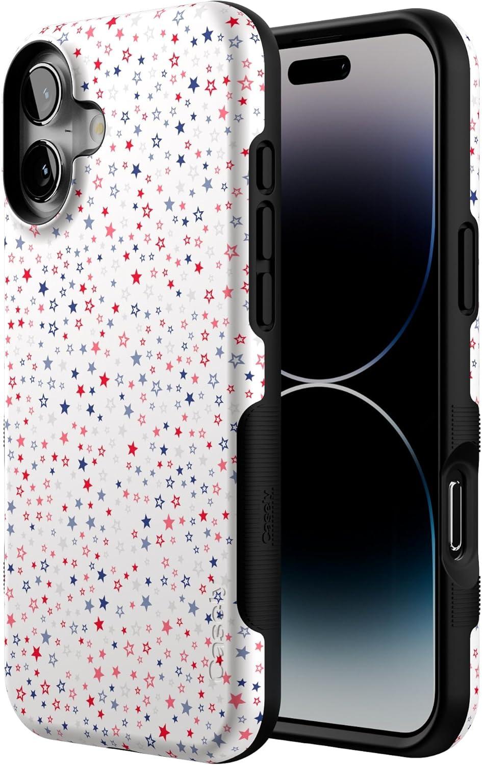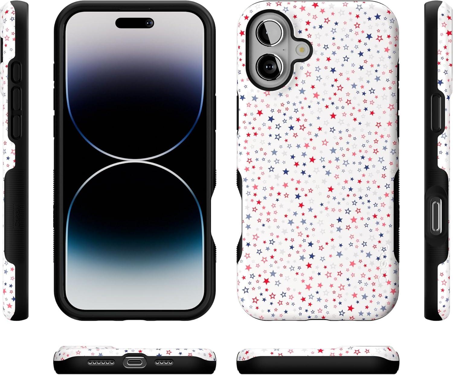 Casely iPhone 16 Plus Case | Poppy Meadows | Pastel Floral | Compatible with MagSafe | Bold Protective Design(Seeing Stars | Red White & Blue)