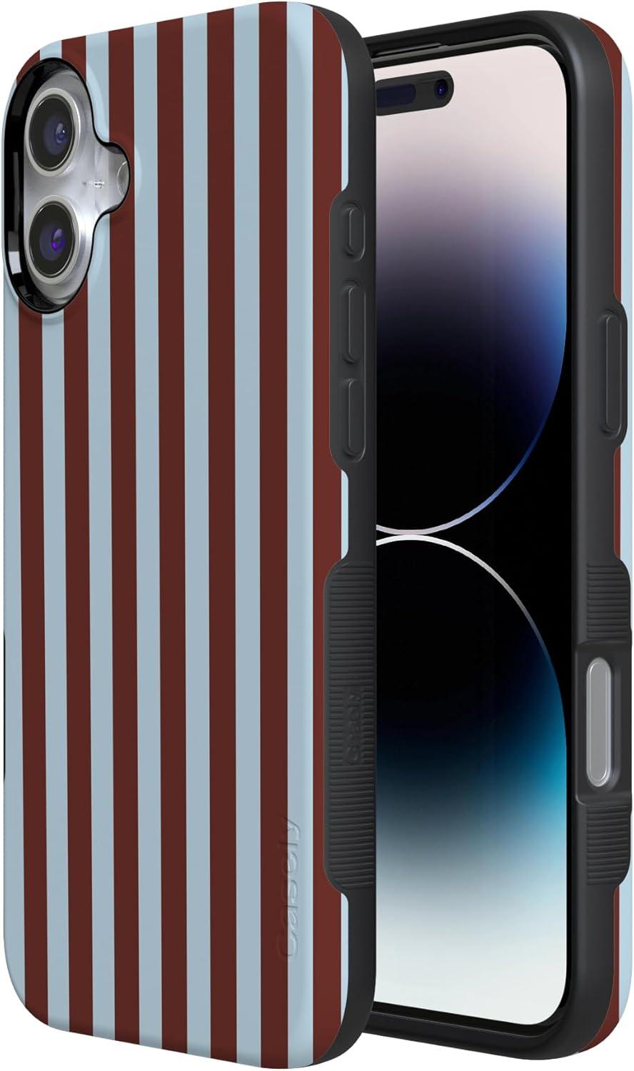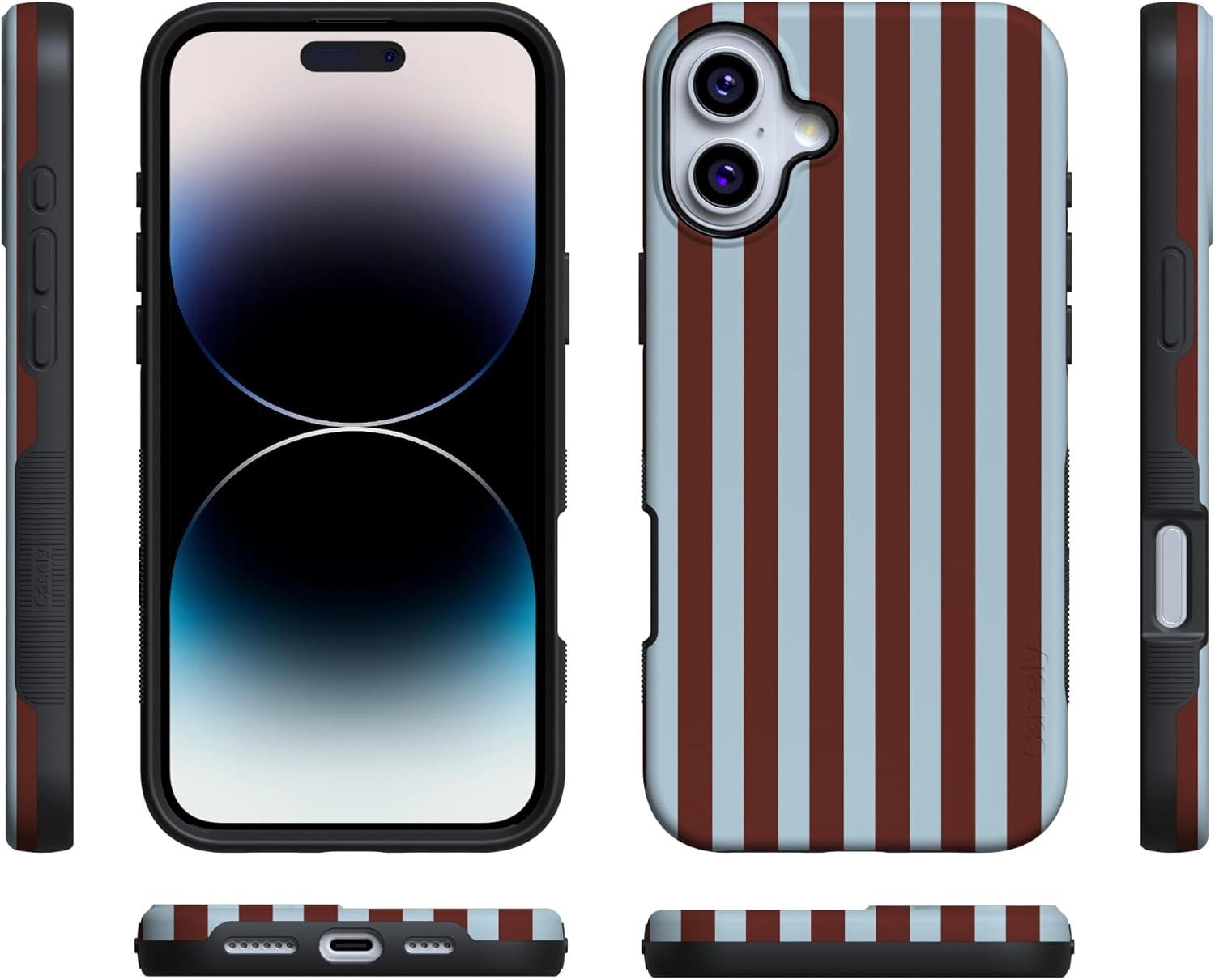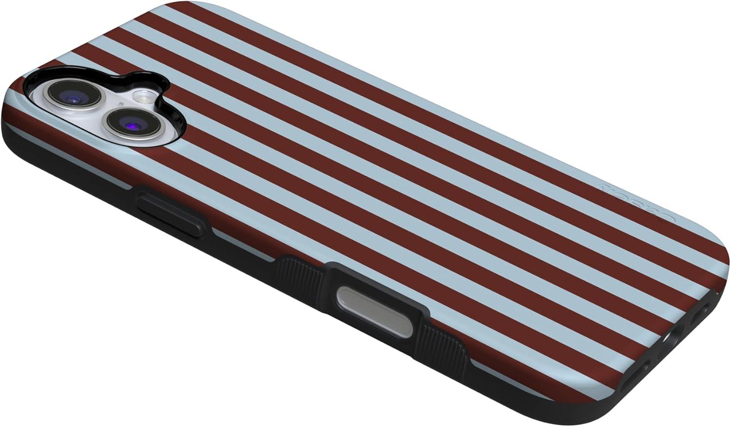 Casely iPhone 16 Plus Case | Poppy Meadows | Pastel Floral | Compatible with MagSafe | Bold Protective Design(Sunday in Brooklyn | Chocolate Stripes)