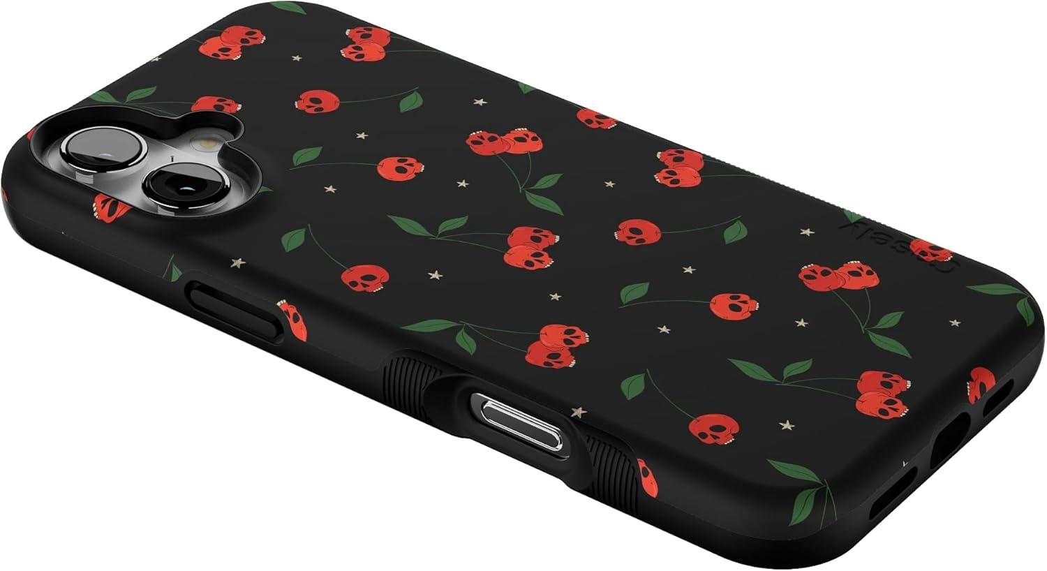 Casely iPhone 16 Plus Case | Poppy Meadows | Pastel Floral | Compatible with MagSafe | Bold Protective Design(Sweet Revenge | Cherry Skulls)