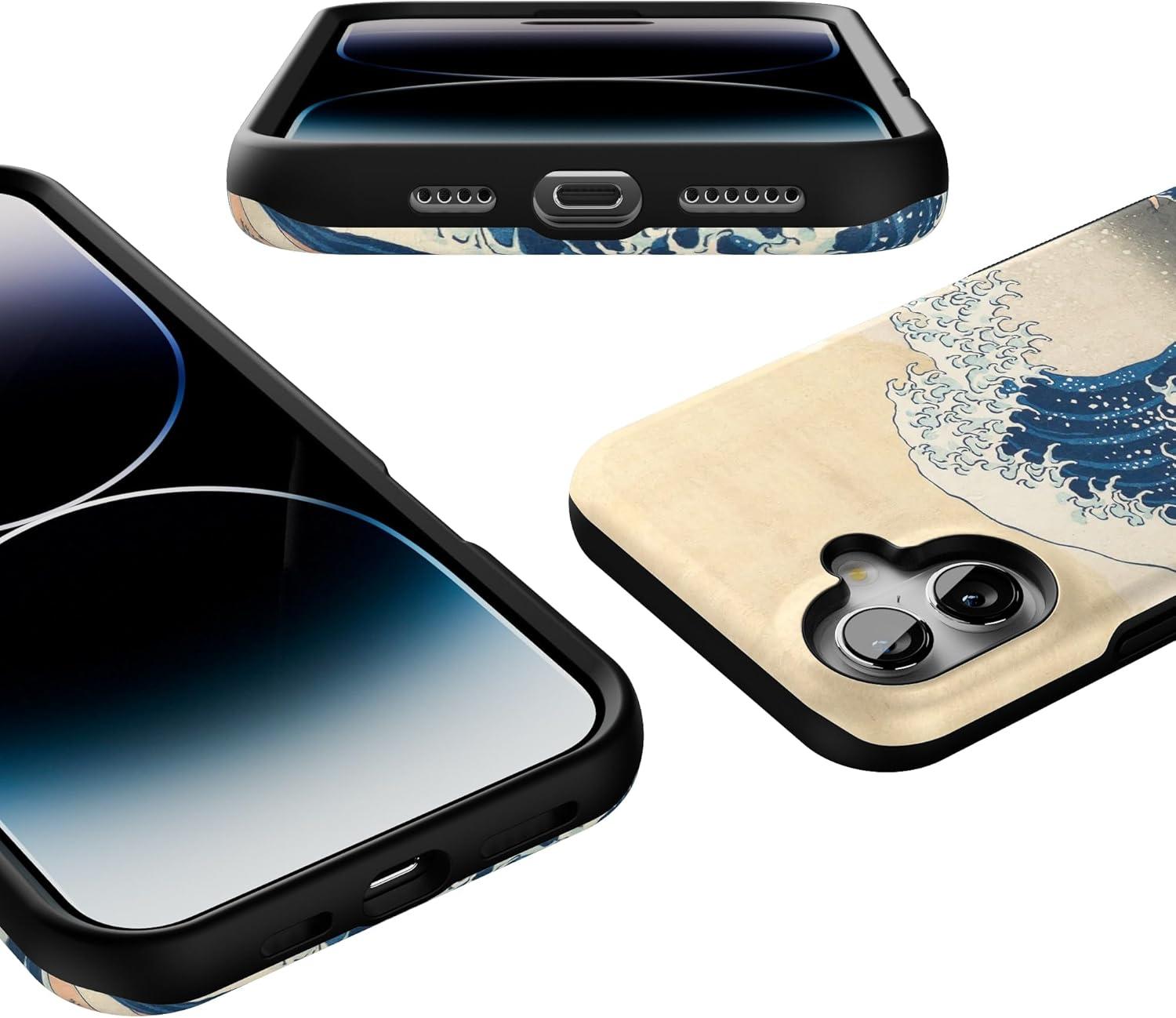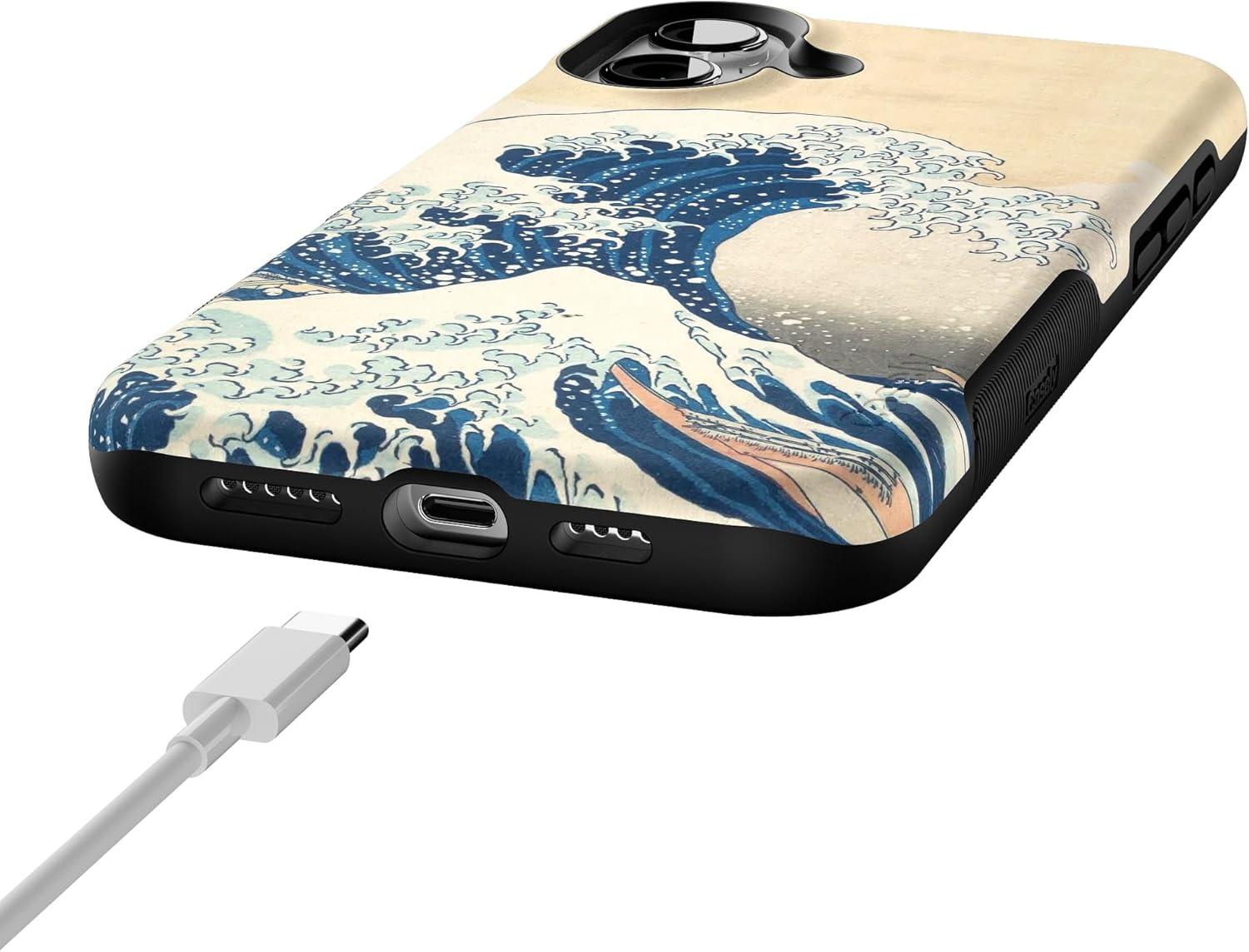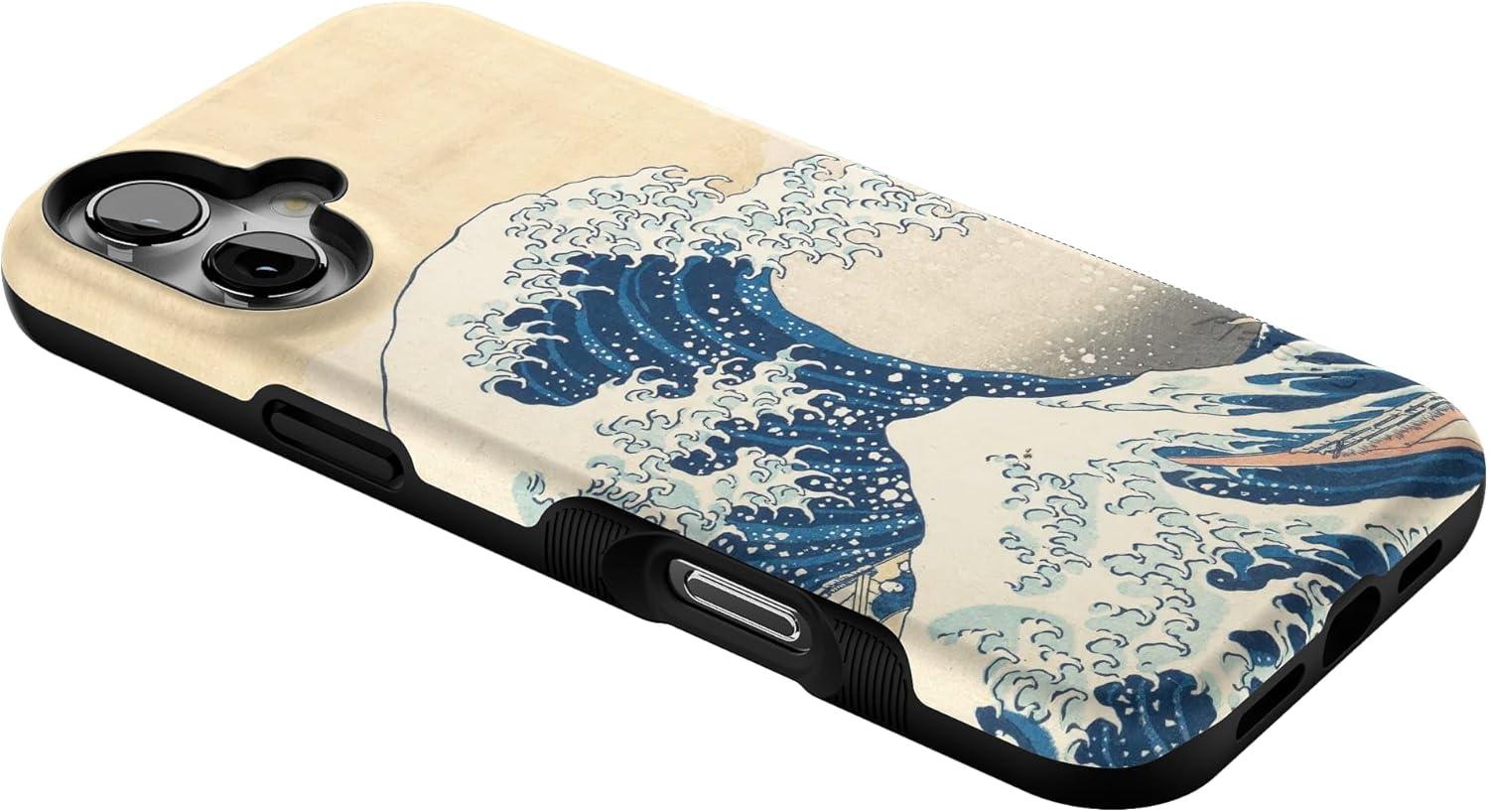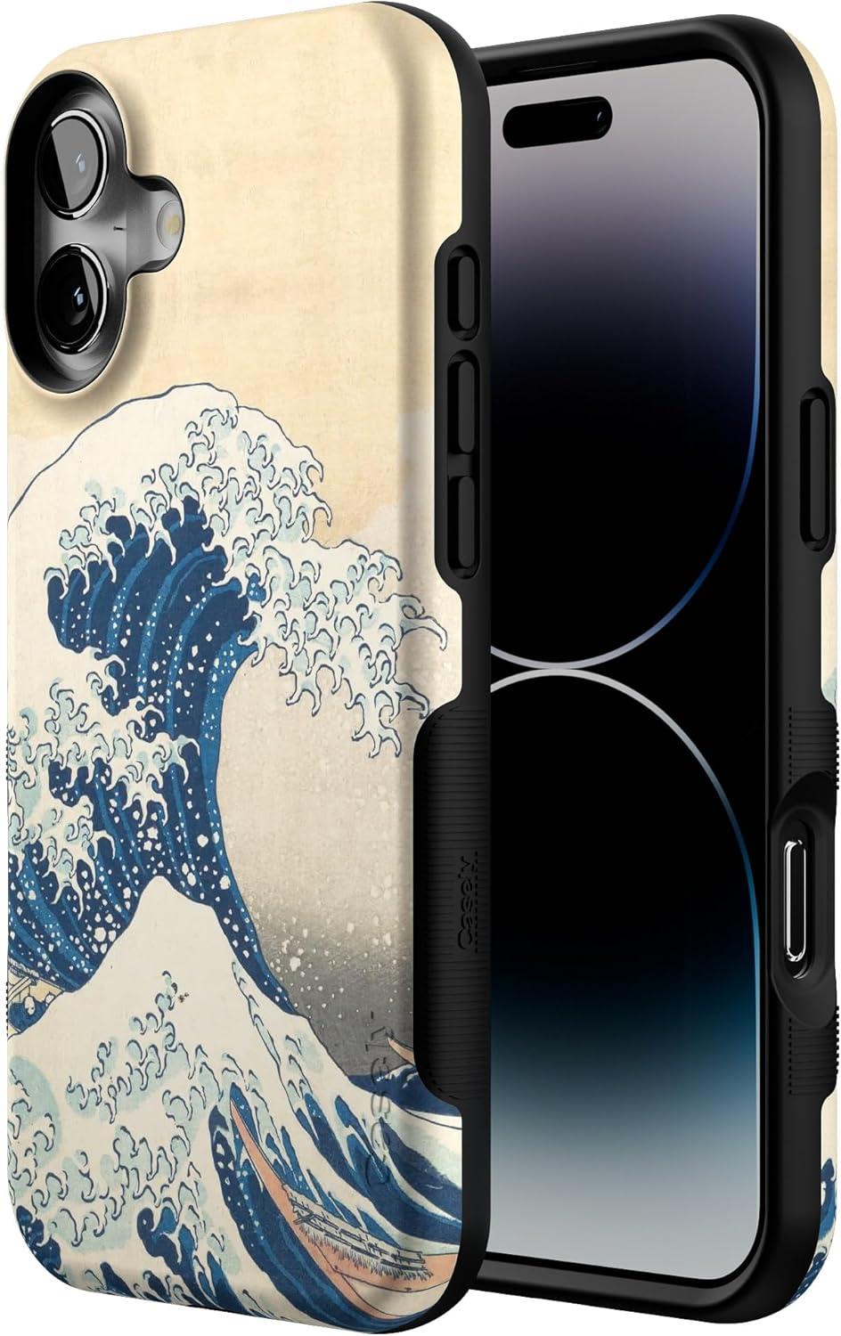 Casely iPhone 16 Plus Case | Poppy Meadows | Pastel Floral | Compatible with MagSafe | Bold Protective Design(The Great Wave | The Met Series)