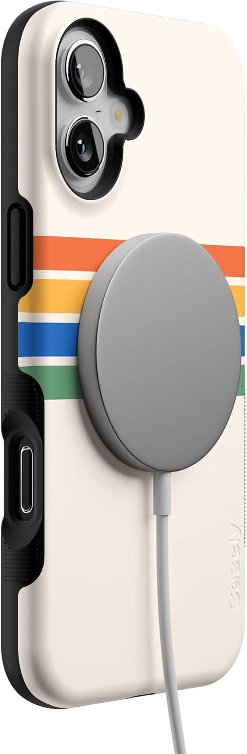 Casely iPhone 16 Plus Case | Poppy Meadows | Pastel Floral | Compatible with MagSafe | Bold Protective Design(Totally Groovy | Rainbow Stripes Color Block)
