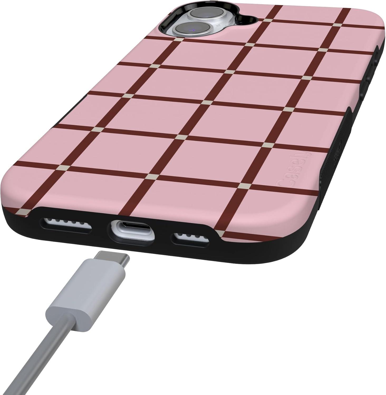 Casely iPhone 16 Plus Case | Poppy Meadows | Pastel Floral | Compatible with MagSafe | Bold Protective Design(Uptown Gridlock | Pink Checkerboard)