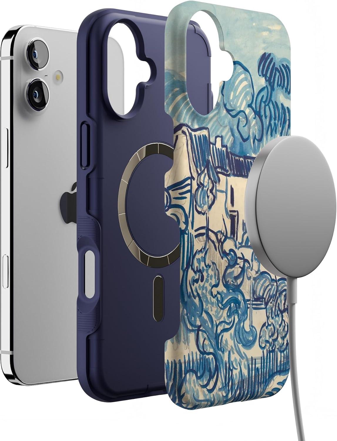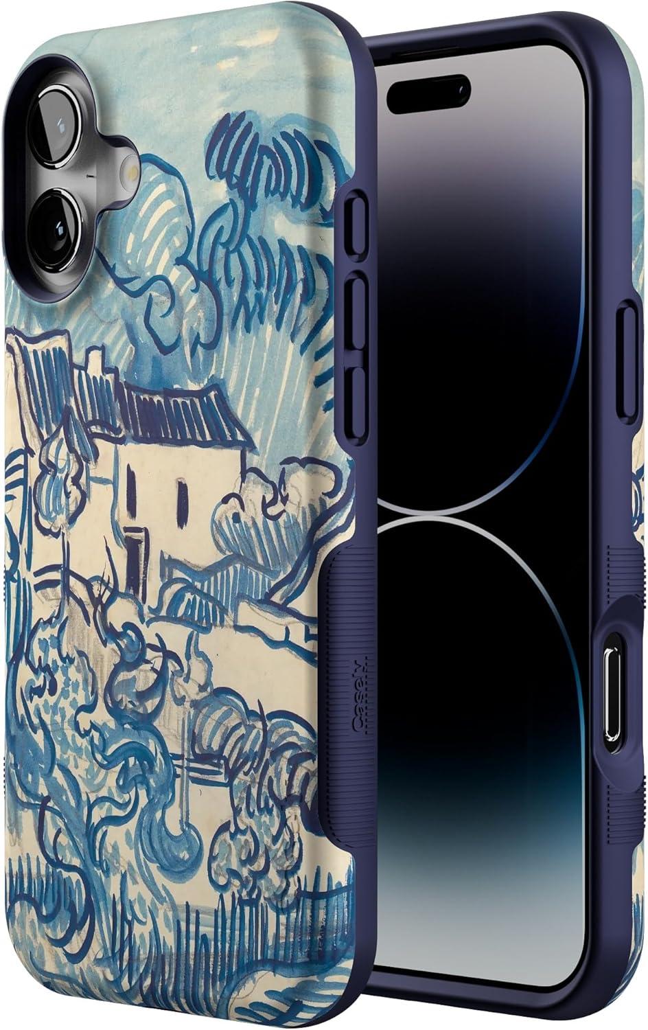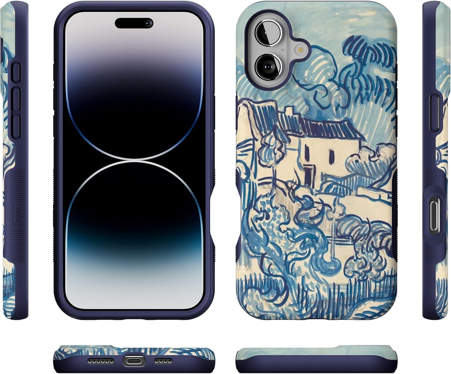 Casely iPhone 16 Plus Case | Poppy Meadows | Pastel Floral | Compatible with MagSafe | Bold Protective Design(Van Gogh | Landscape With Houses Phone)
