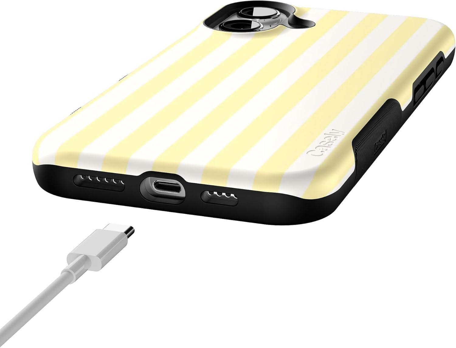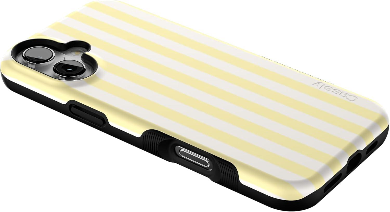 Casely iPhone 16 Plus Case | Poppy Meadows | Pastel Floral | Compatible with MagSafe | Bold Protective Design(Yellow Stripes | Sunday Best)
