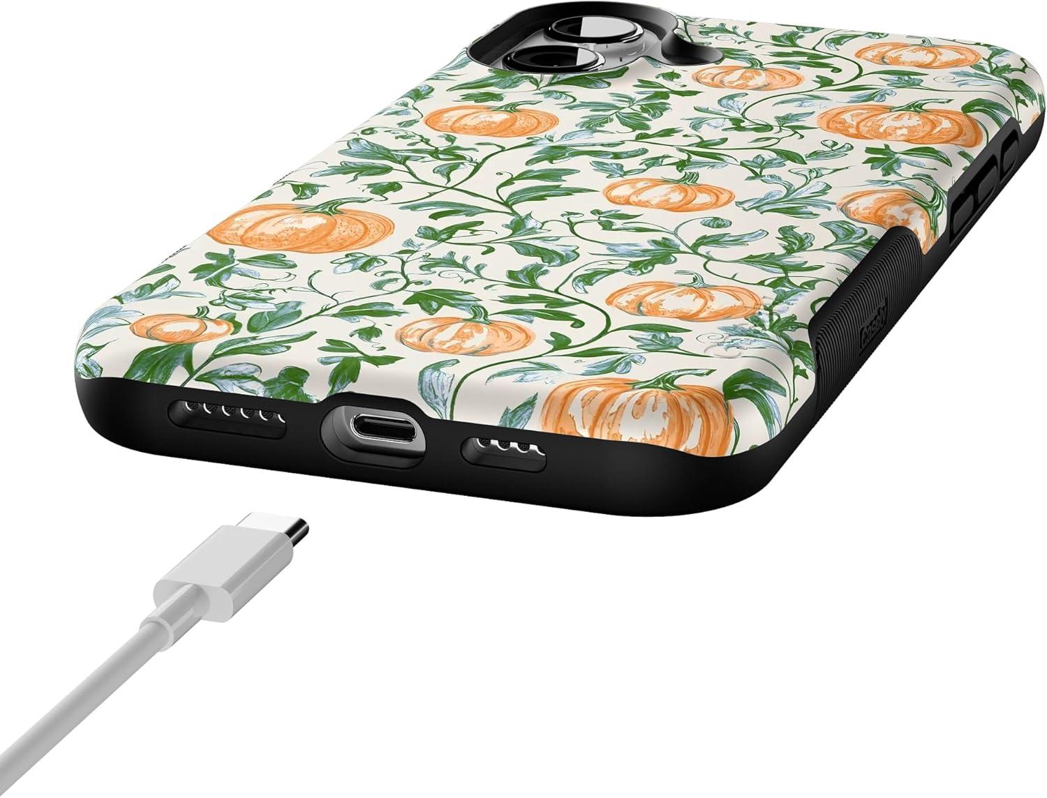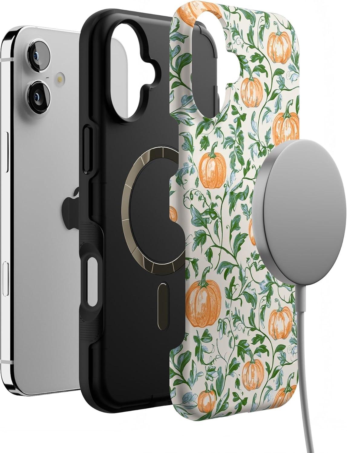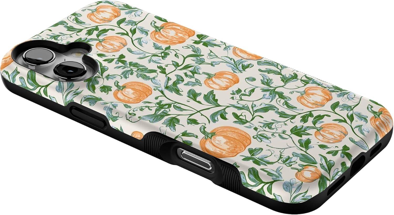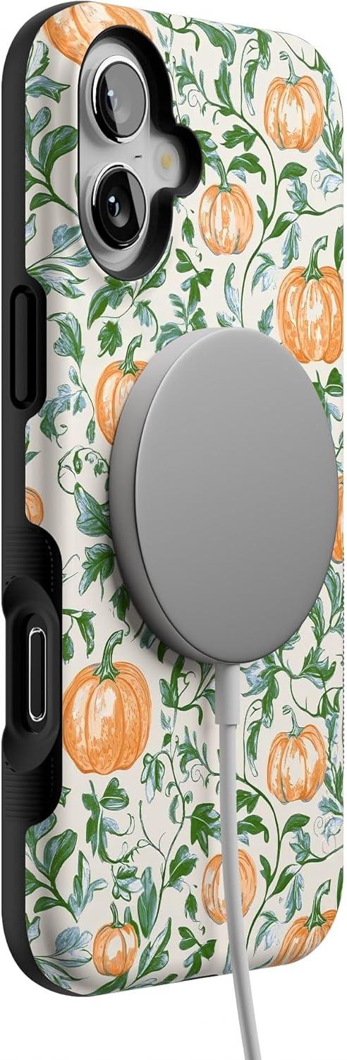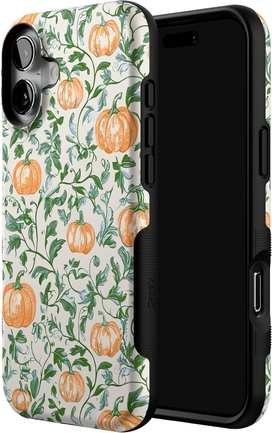 Casely iPhone 16 Plus Case | Pumpkin Patch | Green Vines | Bold Protective Design | MagSafe Compatible Design