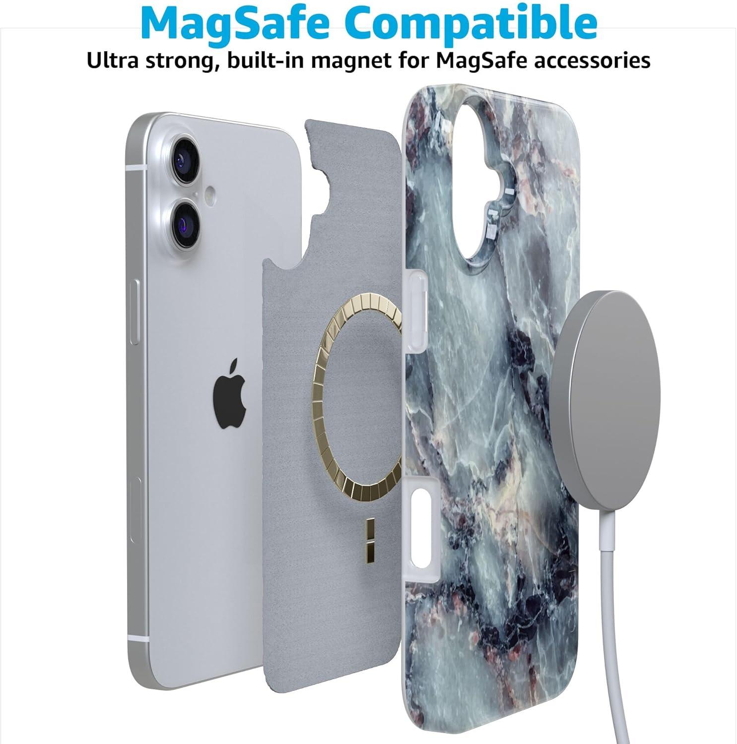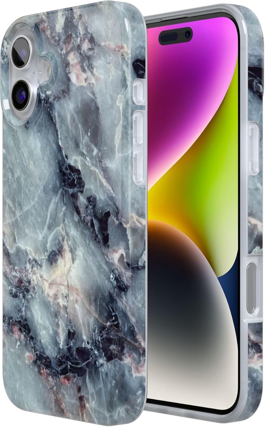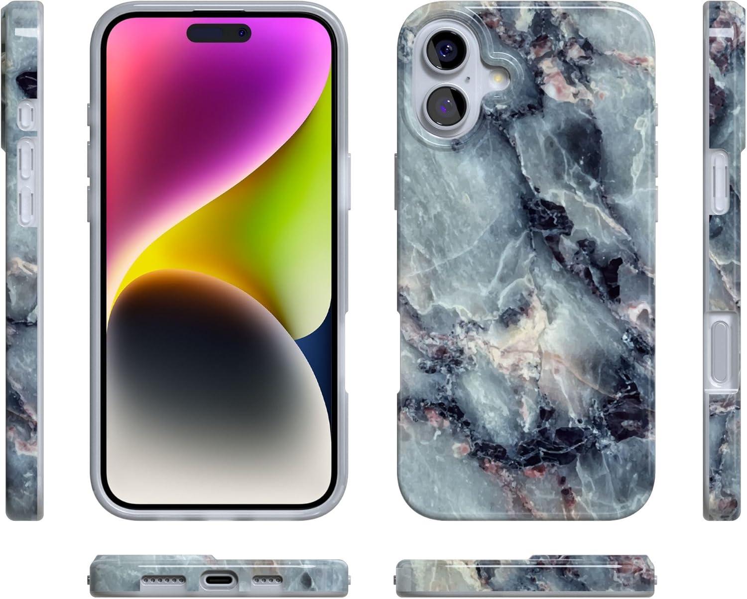 Casely iPhone 16 Plus Case | Tulip Tapestry | Jenna Palek x Casely | Compatible with MagSafe | Classic Ultra Thin Design(Deep Sea | Blue Marble)