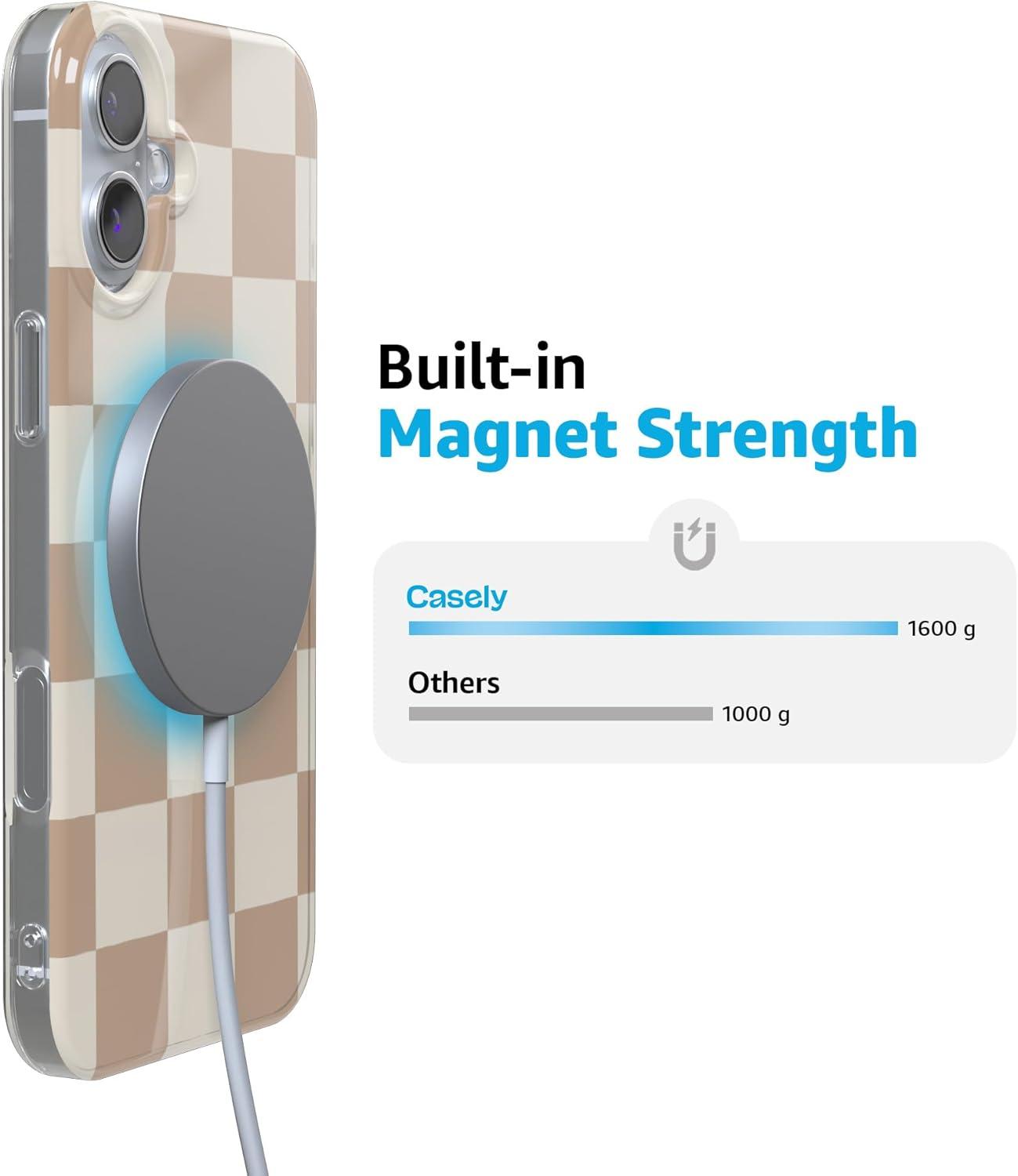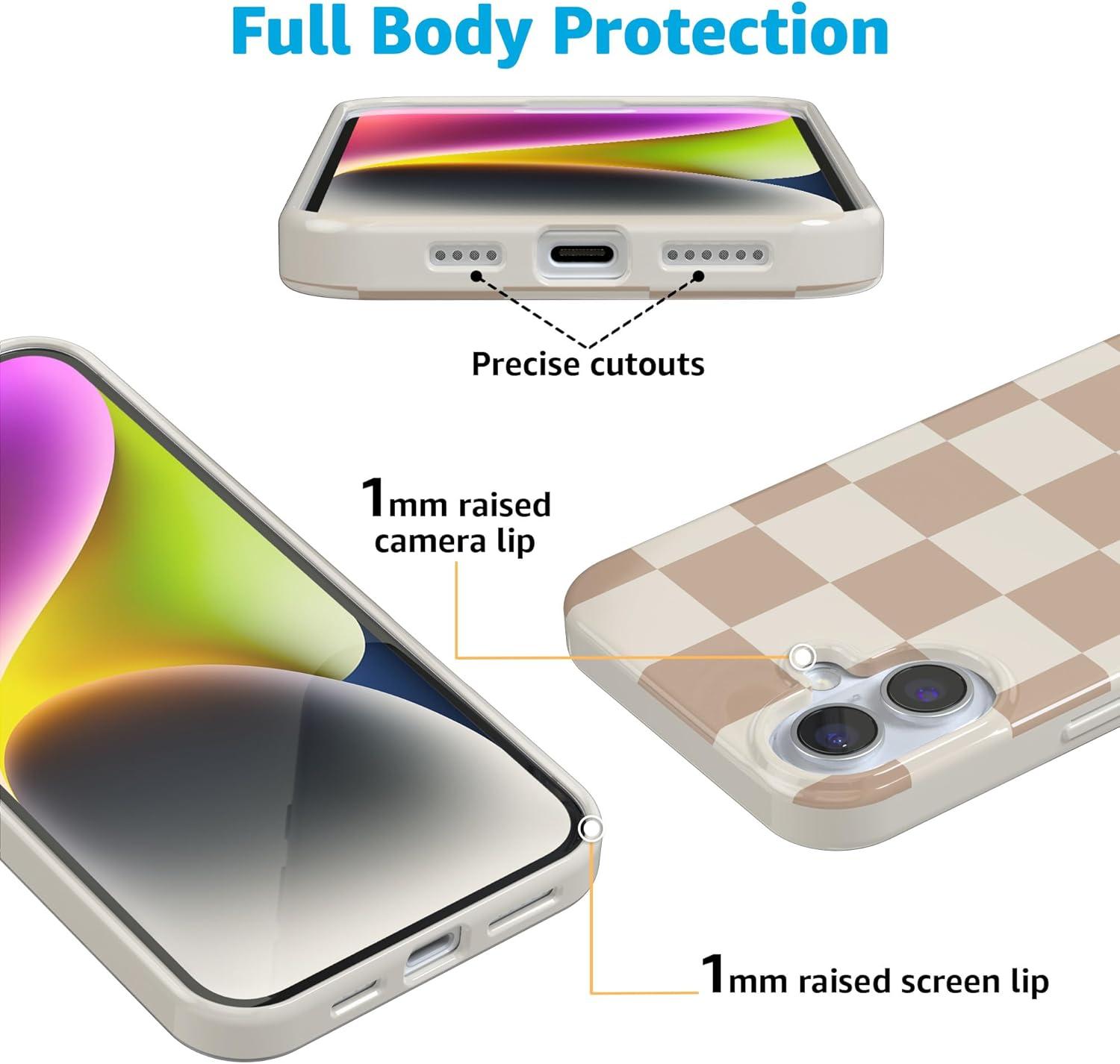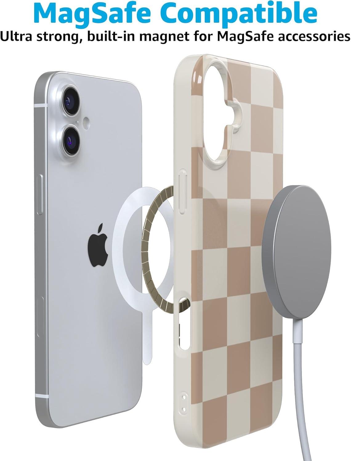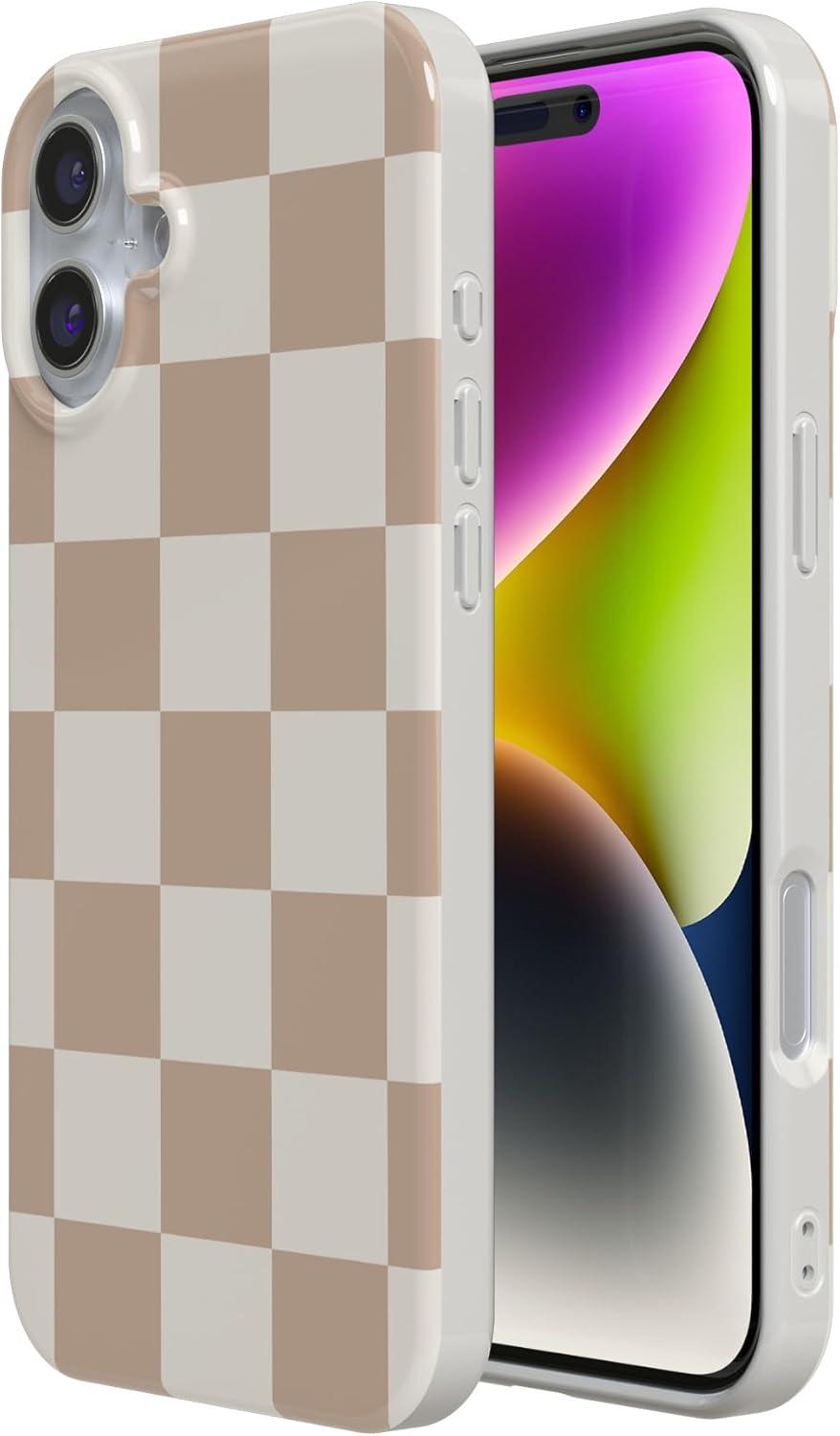 Casely iPhone 16 Plus Case | Tulip Tapestry | Jenna Palek x Casely | Compatible with MagSafe | Classic Ultra Thin Design(Fit Check | Neutral Checkerboard Checkered)